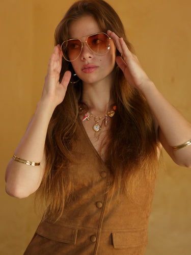 Upgrade your style with Aces Up Sunnies! Featuring a sleek ray ban design with luxurious gold accents and dark frames, these sunglasses will elevate any look.