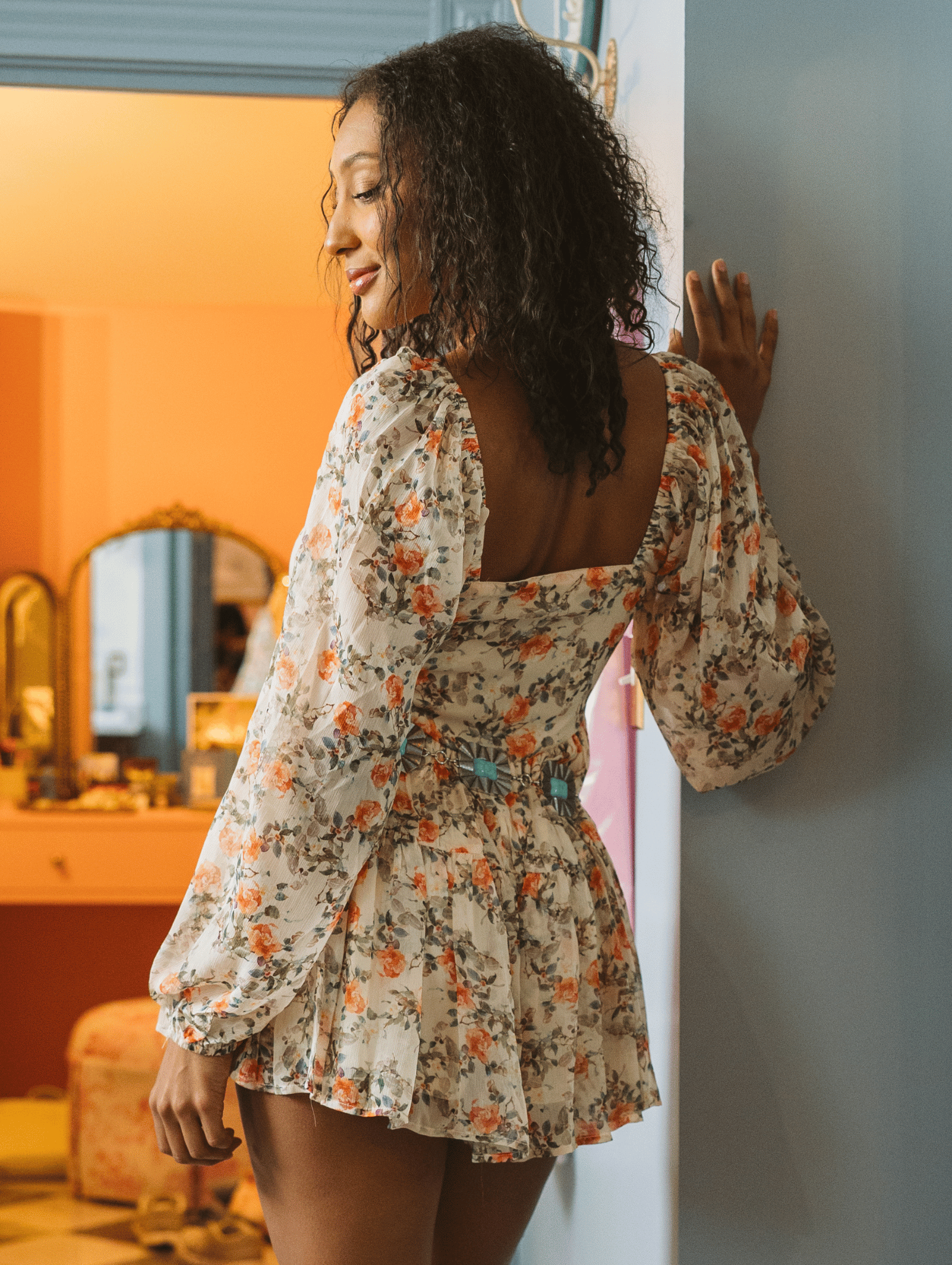The Molly Floral Romper is the best of both worlds—playful like a romper, flirty like a dress. With a square neckline, dreamy sheer sleeves, and a button-up front, it nails that effortless feminine vibe. The drop waist keeps it comfy while the floral print makes it perfect for a fall concert, or Sunday brunch with the girls.