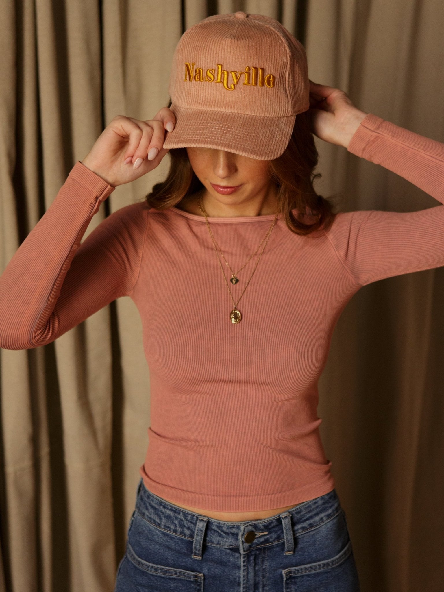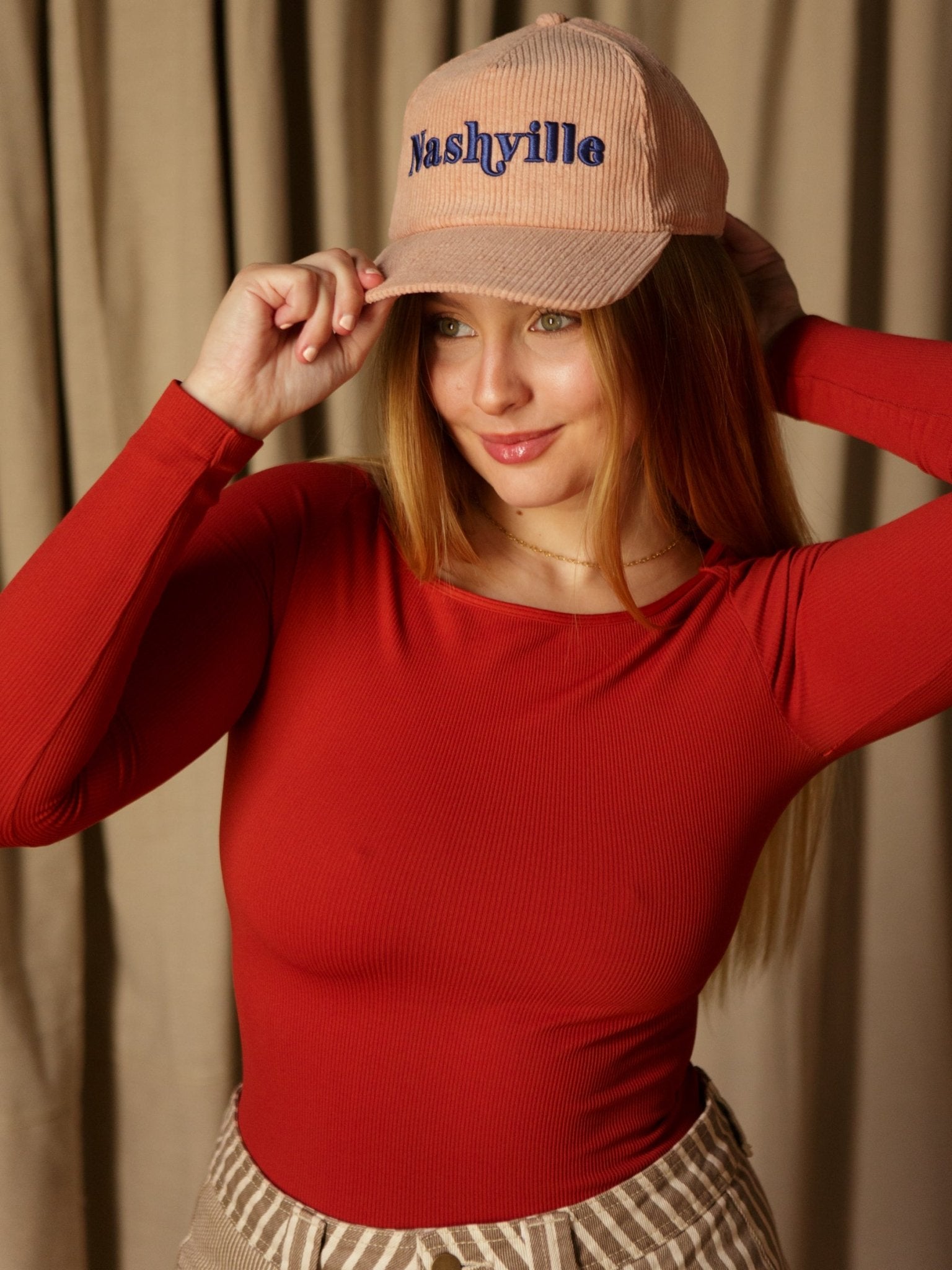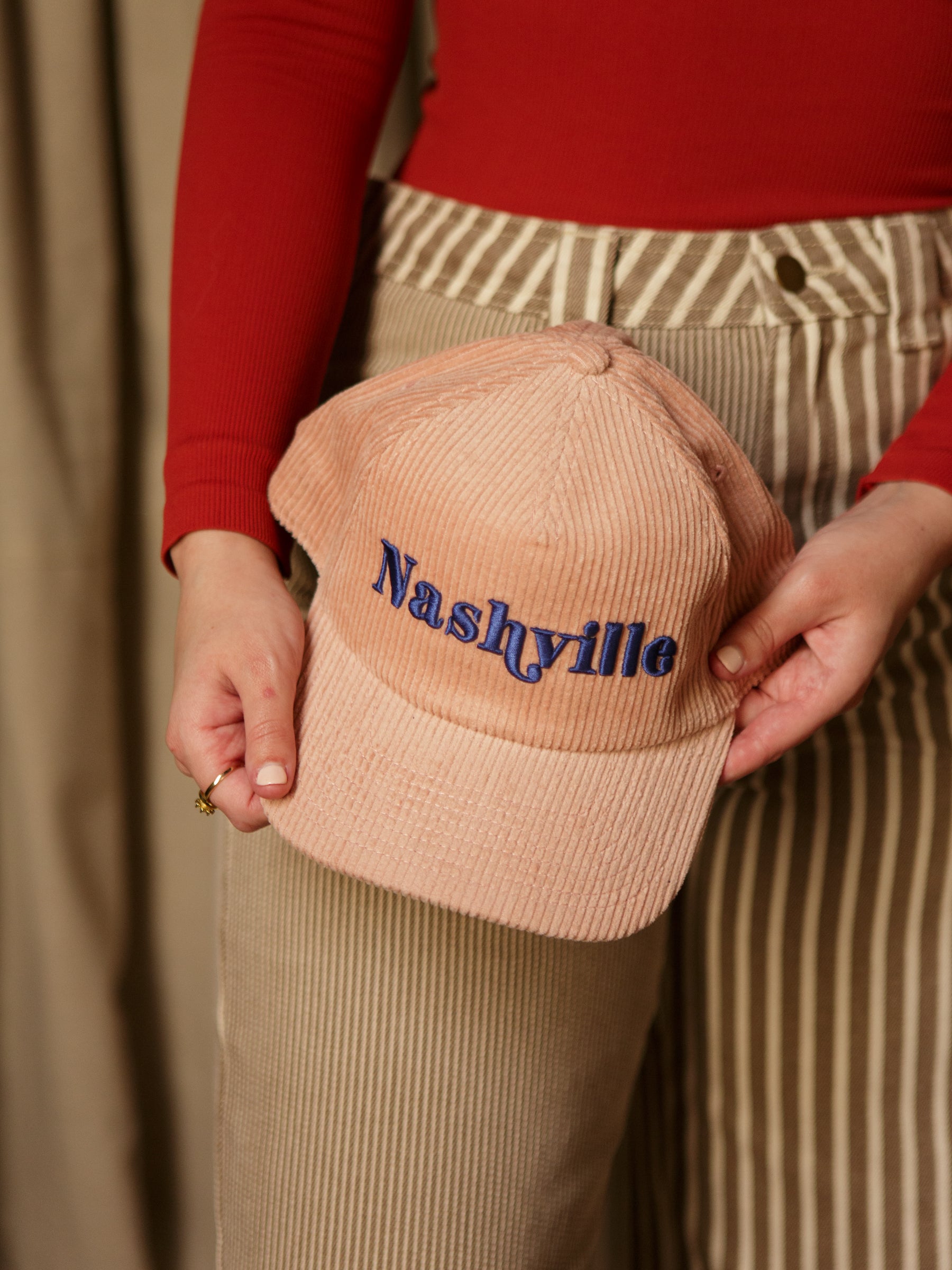 This stylish corduroy snapback hat features a bold "Nashville" embroidered design, perfect for showcasing your love for the vibrant music city. With its comfortable fit and classic silhouette, it effortlessly adds a trendy touch to any casual outfit.