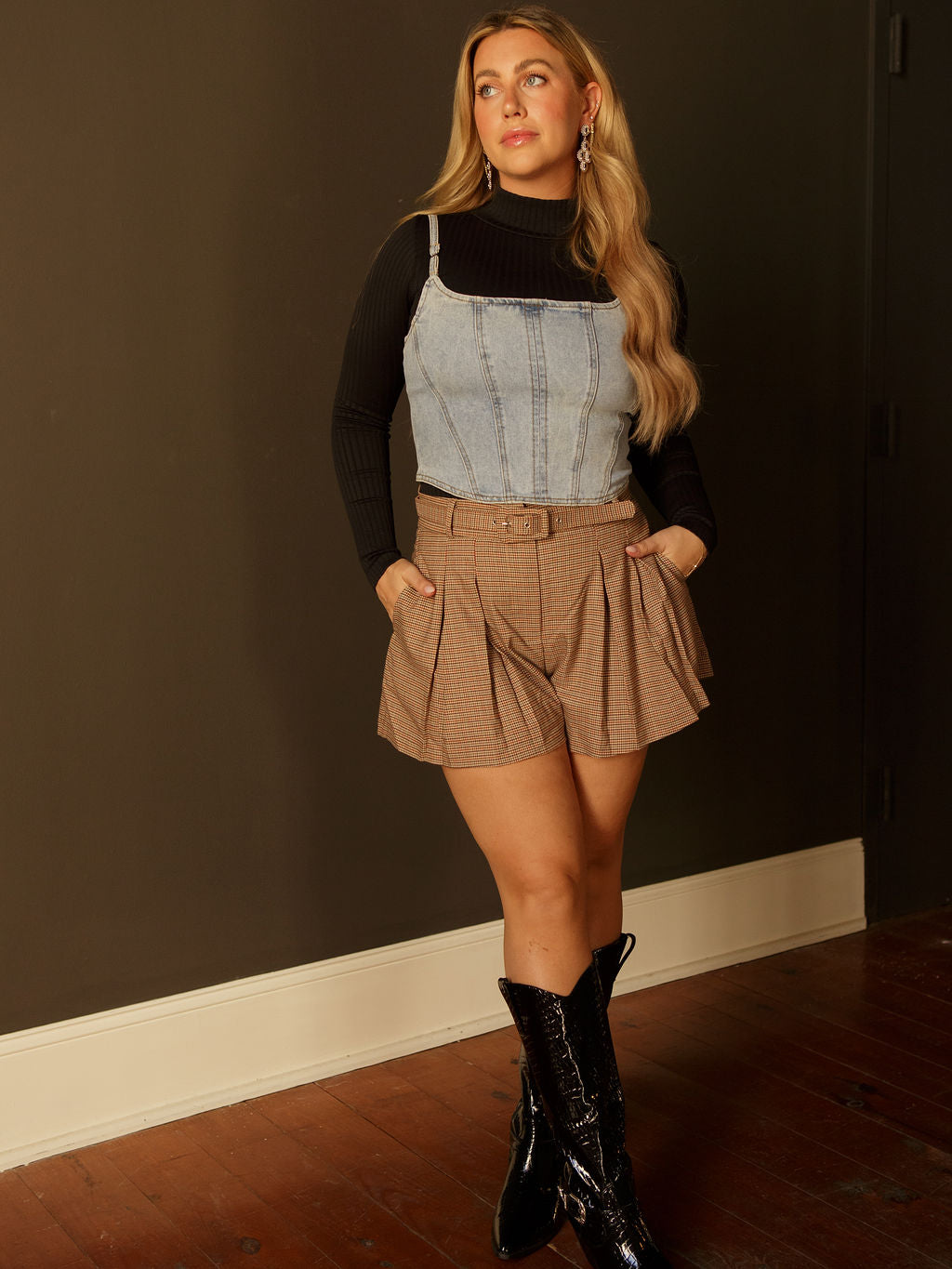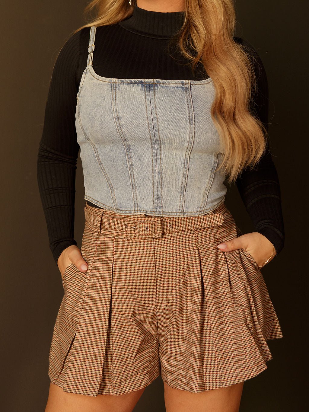 Say hi to the Abygail Shorts—your cute, preppy moment wrapped into one easy fit. These mid-rise, belted plaid shorts feature soft pleating for that perfectly polished vibe, all in an unlined fabric with minimal stretch. Pair them with a cozy sweater or a crisp button-up and you’re instantly the best-dressed in the room.
