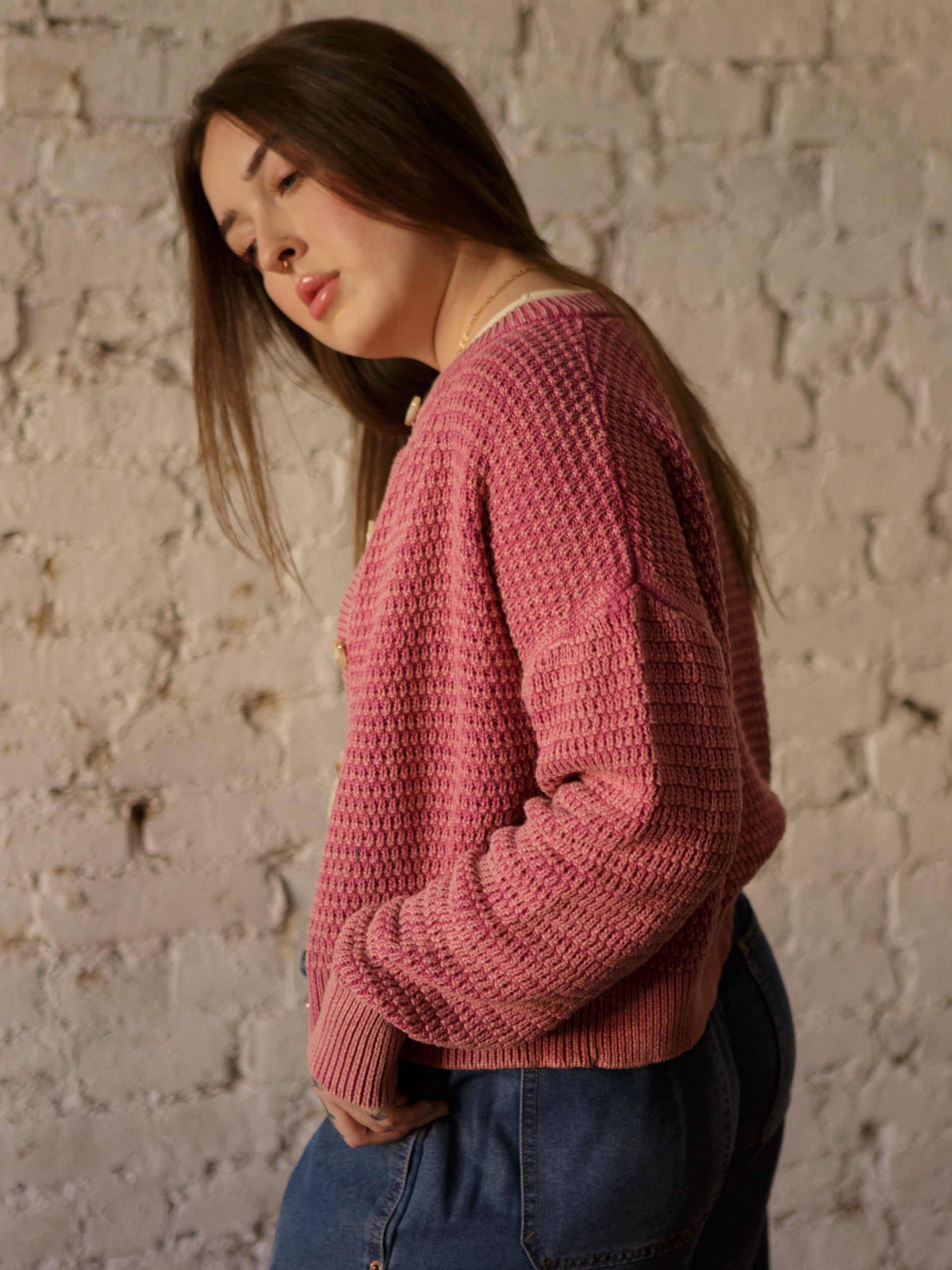 The Aveline Waffle Sweater is your go-to cozy essential. With a round neck, button-up front, and classic waffle knit, it’s perfect for layering over tees or pairing with jeans for lazy-day vibes. Ultra soft and relaxed, it’s comfort without sacrificing style.