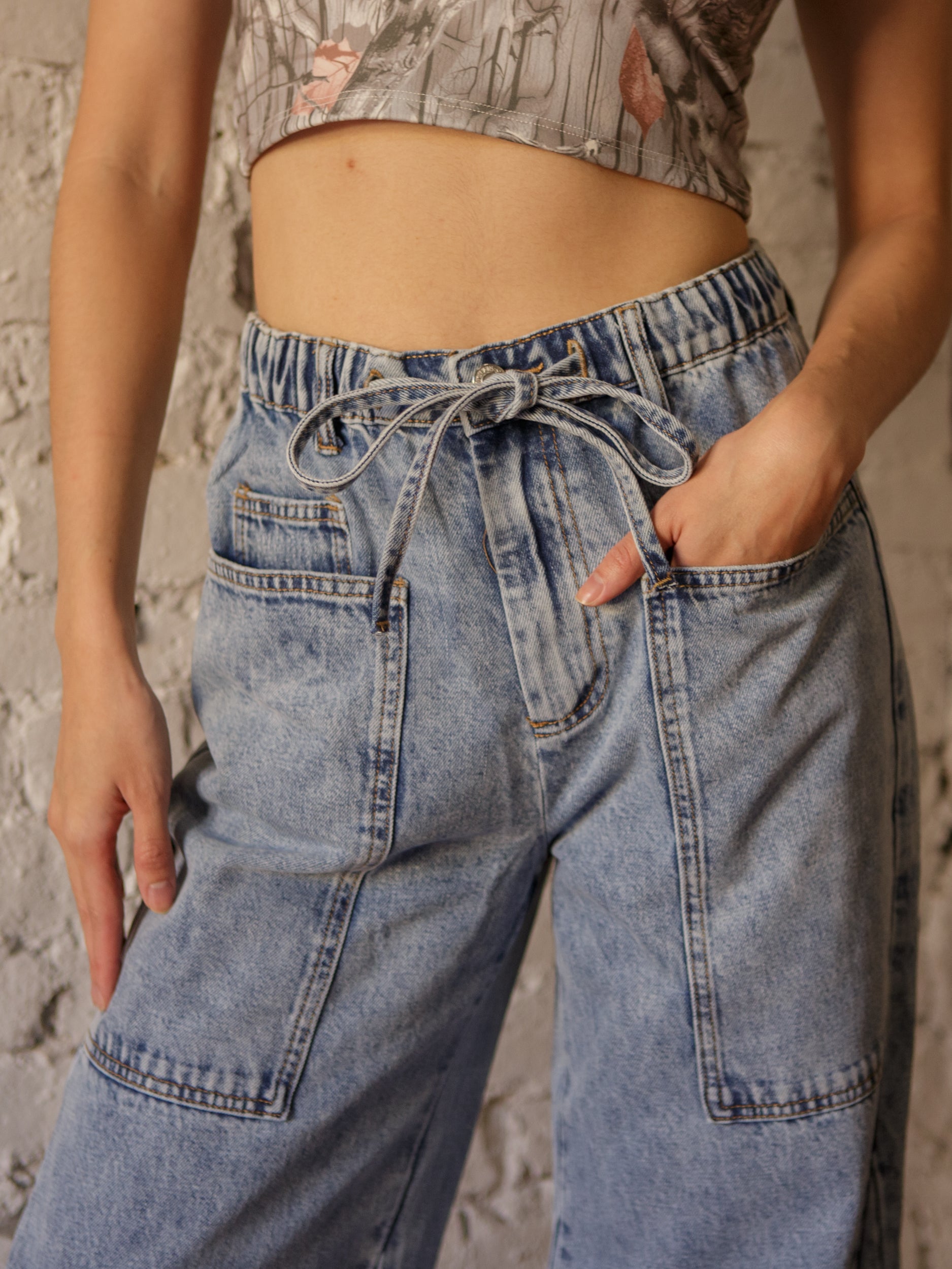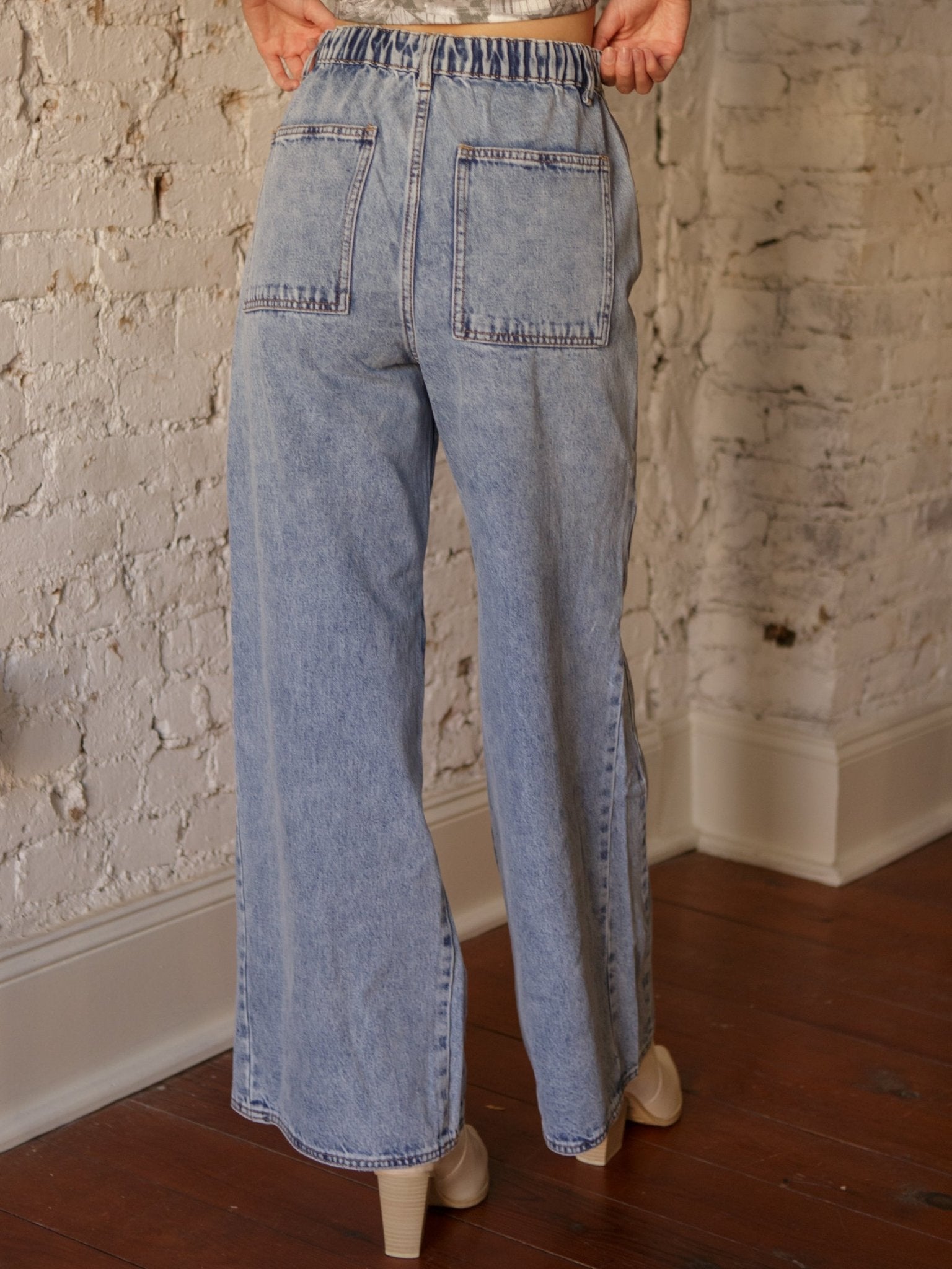 The Mickey Drawstring Jeans are the perfect mix of comfy and cool. With a high-rise fit, elastic waistband, and wide leg style, they give laid-back denim a fresh twist. Pair with a cropped tee or tucked-in blouse for an effortless, everyday look.
