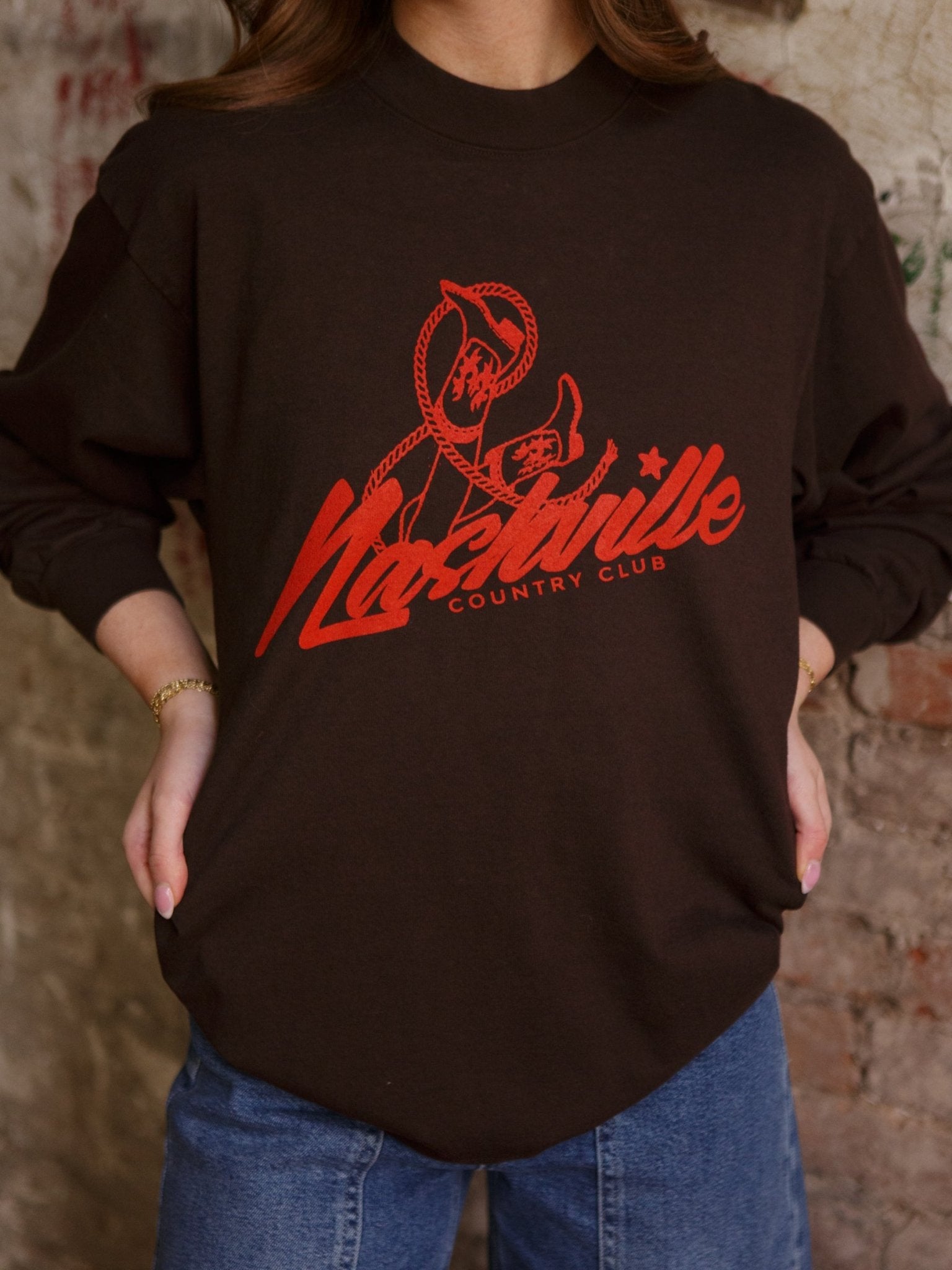 Meet the Nashville Country Club Long Sleeve — the heavyweight tee for every girl who loves a little cowgirl charm. With an oversized fit and a fun boot-and-rope print, it’s the perfect throw-on-and-go top for lazy mornings, road trip playlists, or grabbing lattes before class.