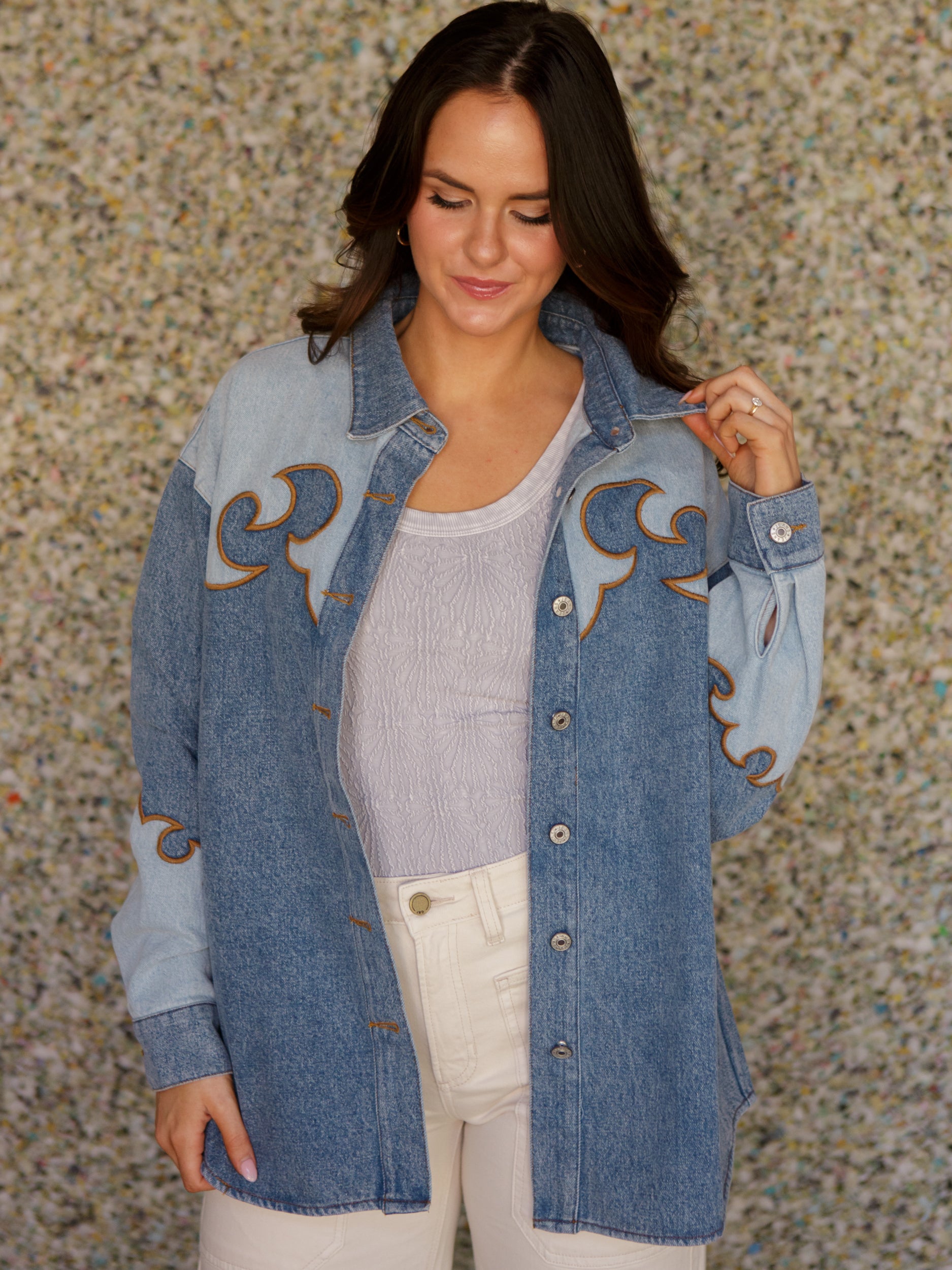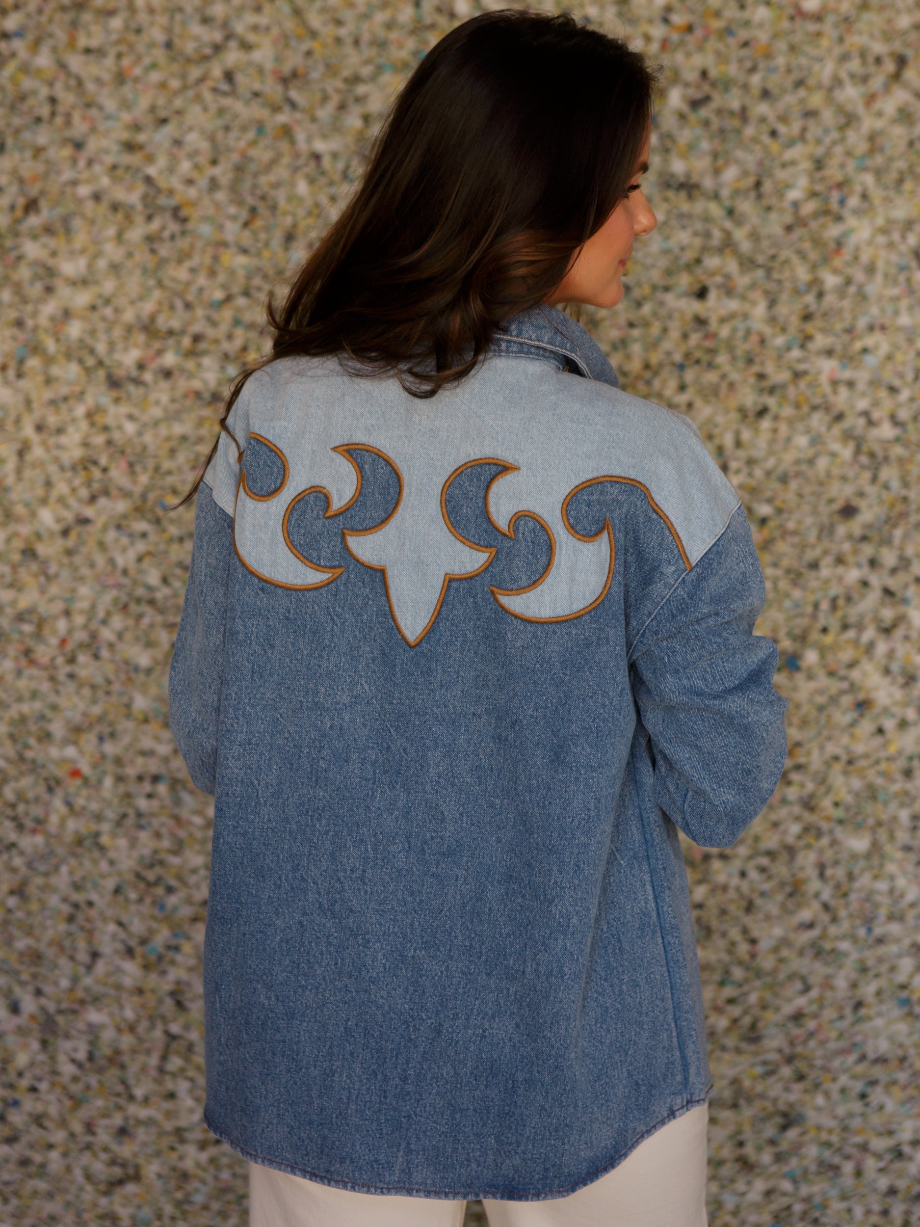 This jacket is the statement piece your closet didn’t know it needed. The oversized fit gives it that effortless, cool-girl vibe while the western stitching adds just the right amount of edge. Throw it on over literally anything—denim, dresses, or basics—and instantly look styled.