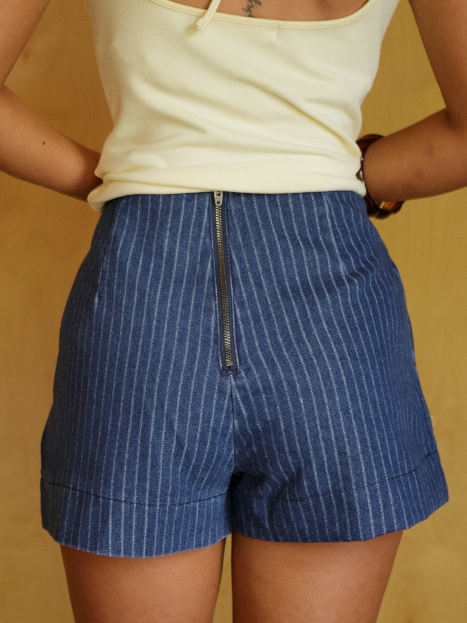 - Denim skort with subtle stripe pattern