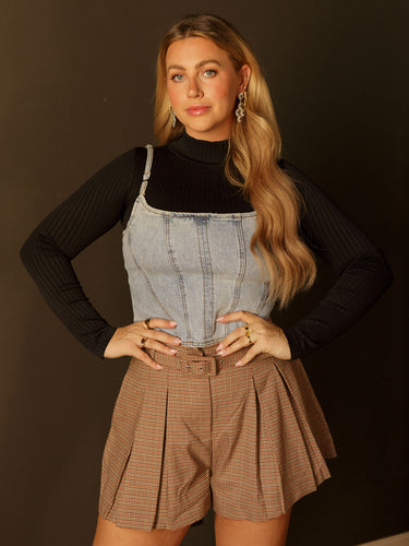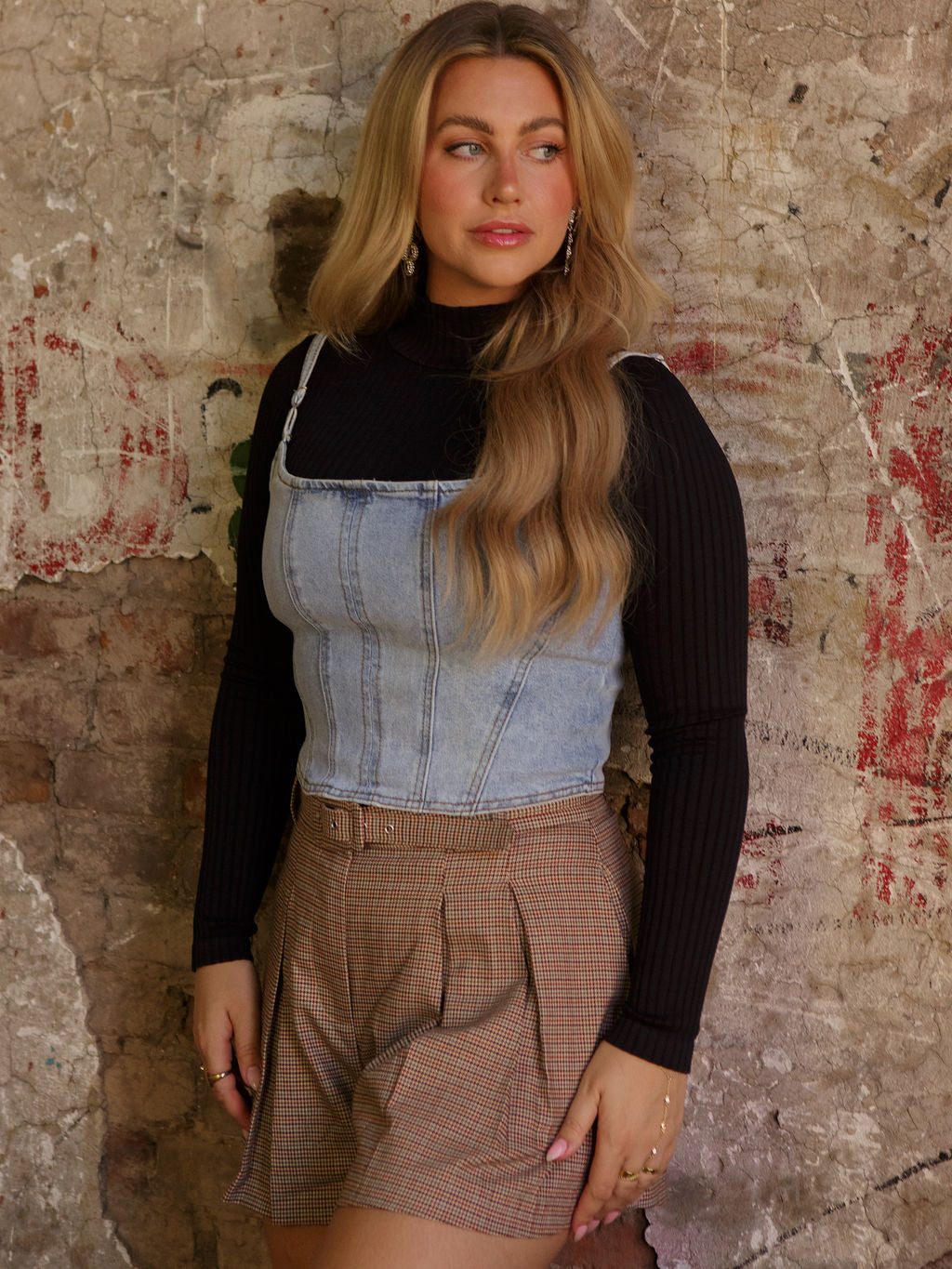 The Skylon Denim Corset is here to elevate your denim game. With a structured square neckline, adjustable straps, and classic corset seams, it hugs in all the right places while still offering a bit of stretch. Pair it with cargos, maxis, or your fave denim for an effortlessly cool vibe.
