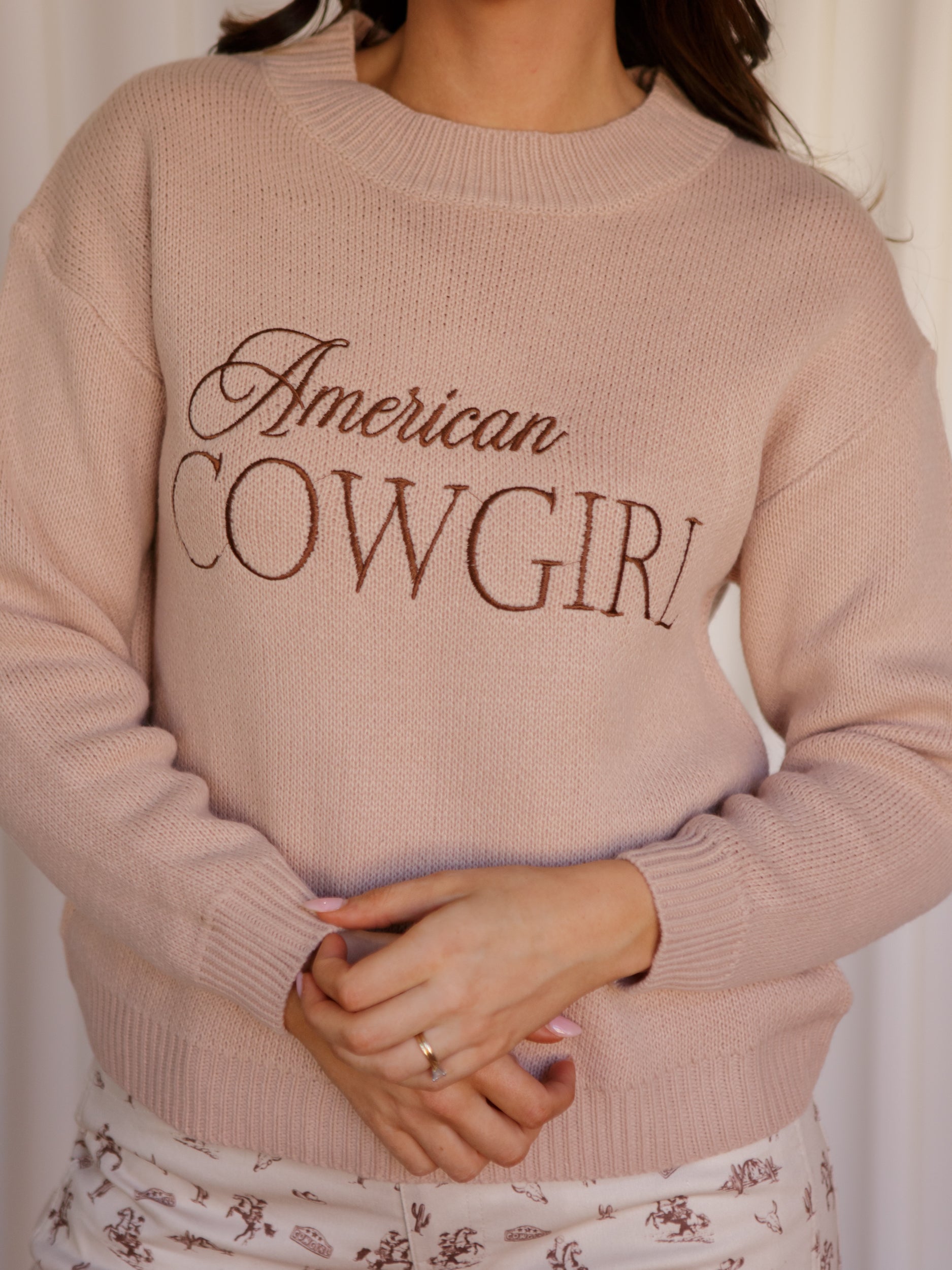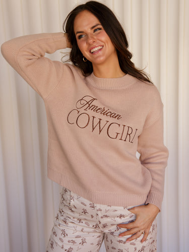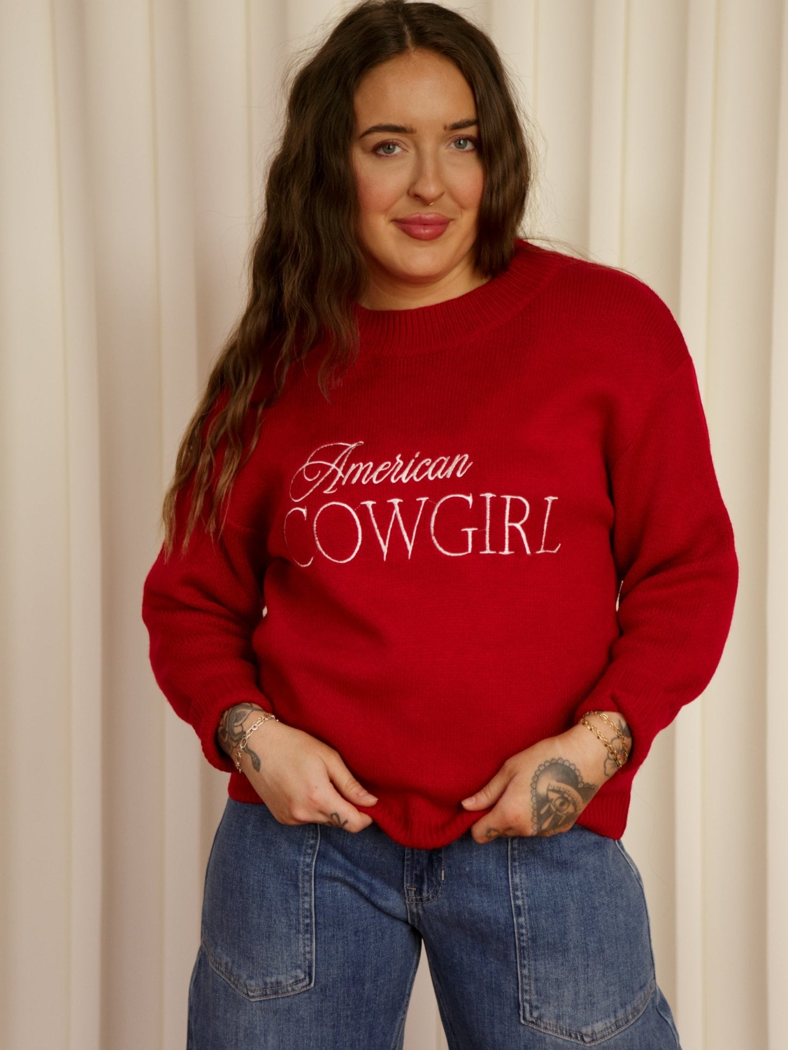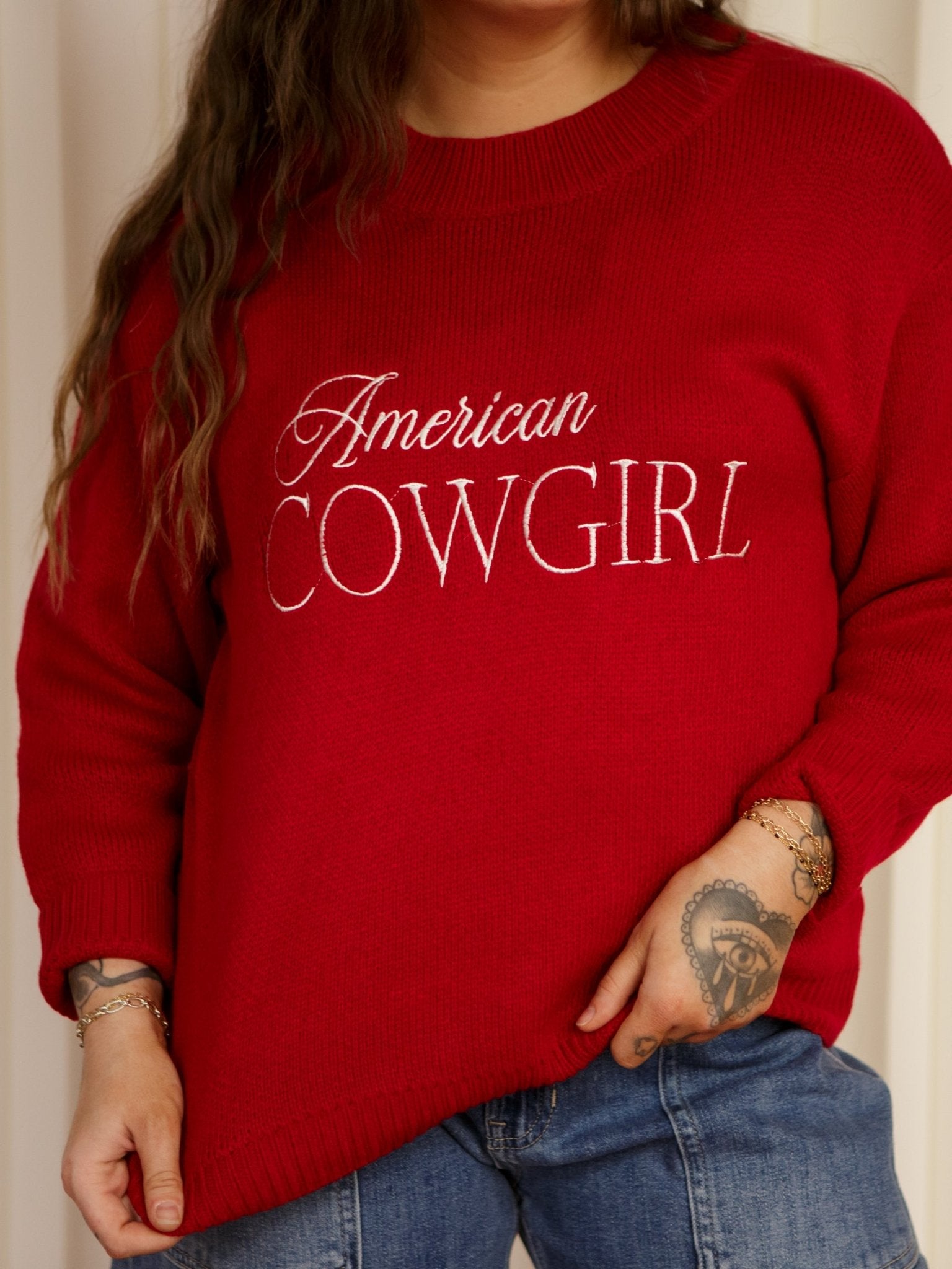 The American Cowgirl Sweatshirt is bold, cozy, and ready for wherever the day takes you. The chunky rib knit gives it that elevated texture, while the statement graphic keeps it fun and unapologetically western. Throw it on with denim cutoffs and boots for a laid-back concert look, or pair it with relaxed jeans and sneakers for an easy everyday vibe.