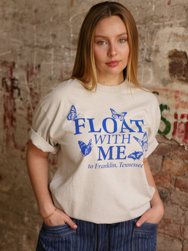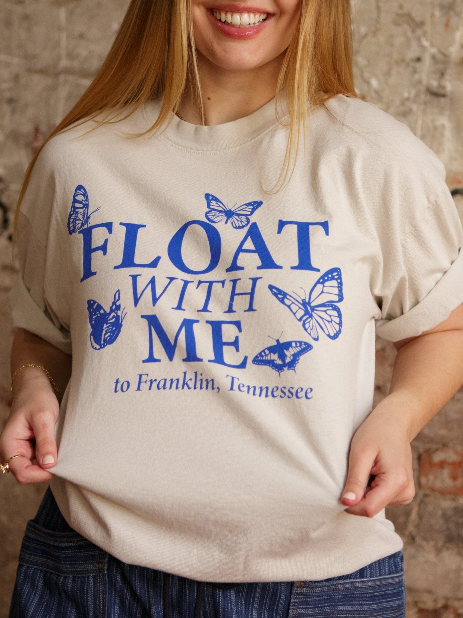 Float on in style with the Butterfly Franklin Tee! With dreamy butterfly details and a nod to Franklin, Tennessee, this oversized graphic tee is perfect for laid-back days and music-filled nights. Printed in Nashville and exclusive to Molly Green, it's a must-have for your collection. Pair it with denim cutoffs or biker shorts for an effortless, cool-girl vibe!