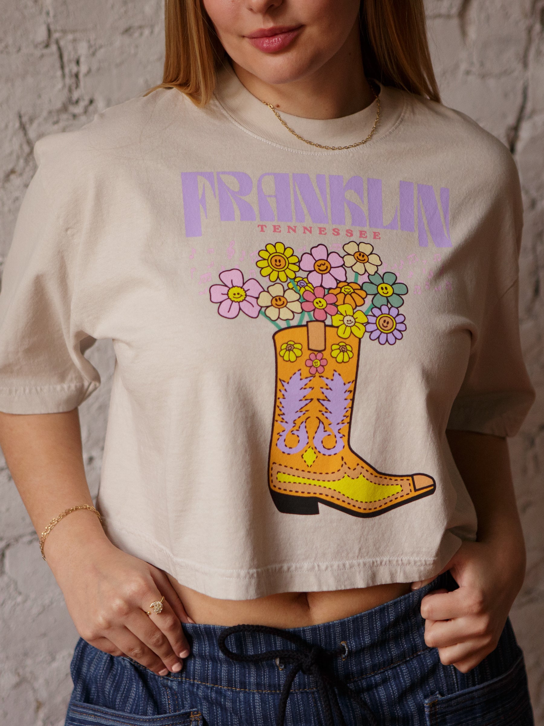 The Franklin Bootiful Oversize Crop Tee is bringing all the boot-scootin’ energy! With a boxy, oversized fit and cropped length, this graphic tee is made for honky tonk nights and brunch the next morning. Style it with cutoffs or over a slip dress for a vibe that says yeehaw, but make it fashion.