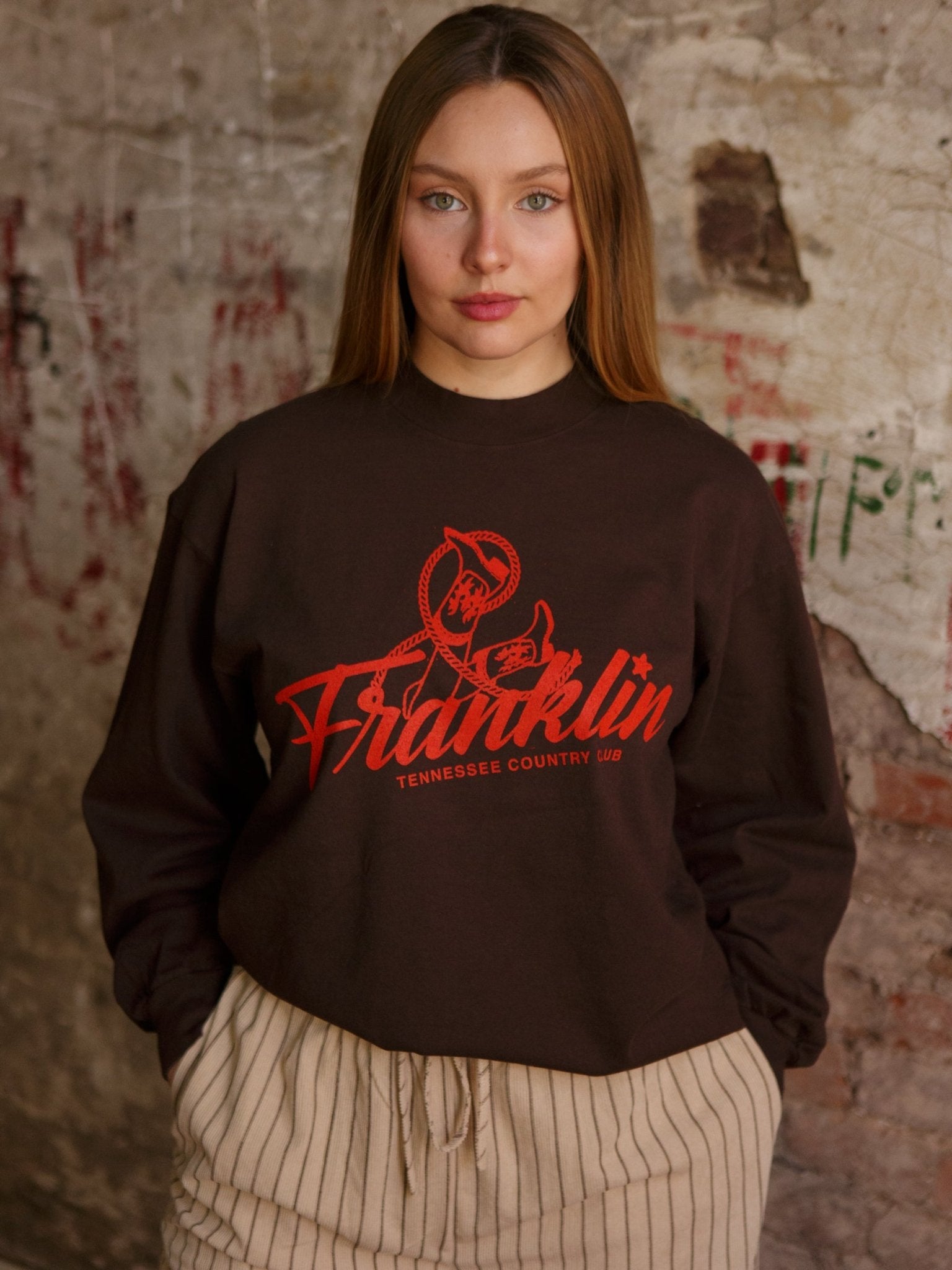 Meet the Franklin Country Club Long Sleeve — the heavyweight tee for every girl who loves a little cowgirl charm. With an oversized fit and a fun boot-and-rope print, it’s the perfect throw-on-and-go top for lazy mornings, road trip playlists, or grabbing lattes before class.
