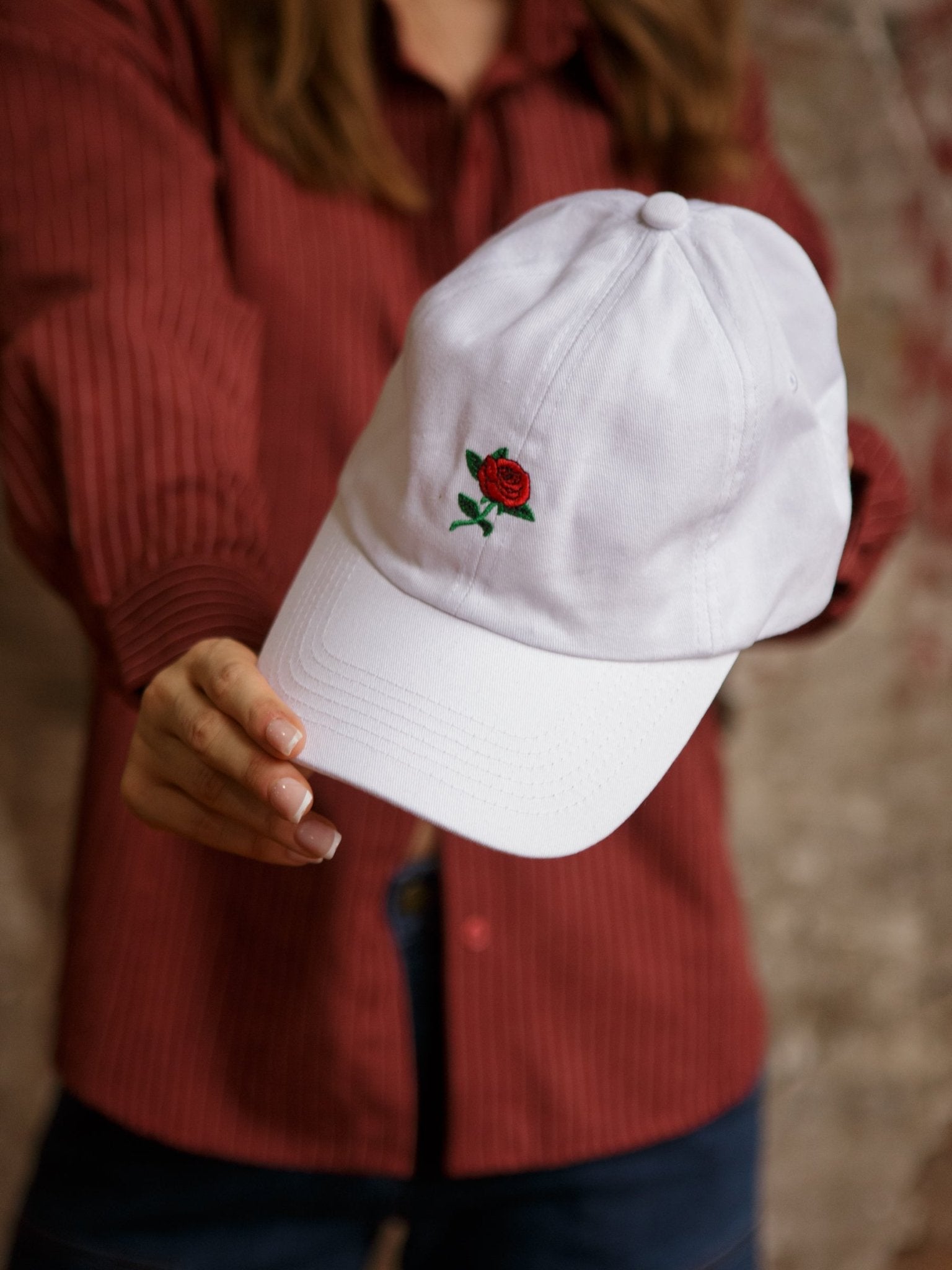 A little sporty, a little sweet—the Rose Cap is the perfect finishing touch to any casual ‘fit. Made from 100% cotton with an embroidered rose detail, this cap brings just the right amount of charm. The adjustable snapback closure ensures a comfy fit, whether you're running errands or adding a laid-back touch to your look. 🌹✨