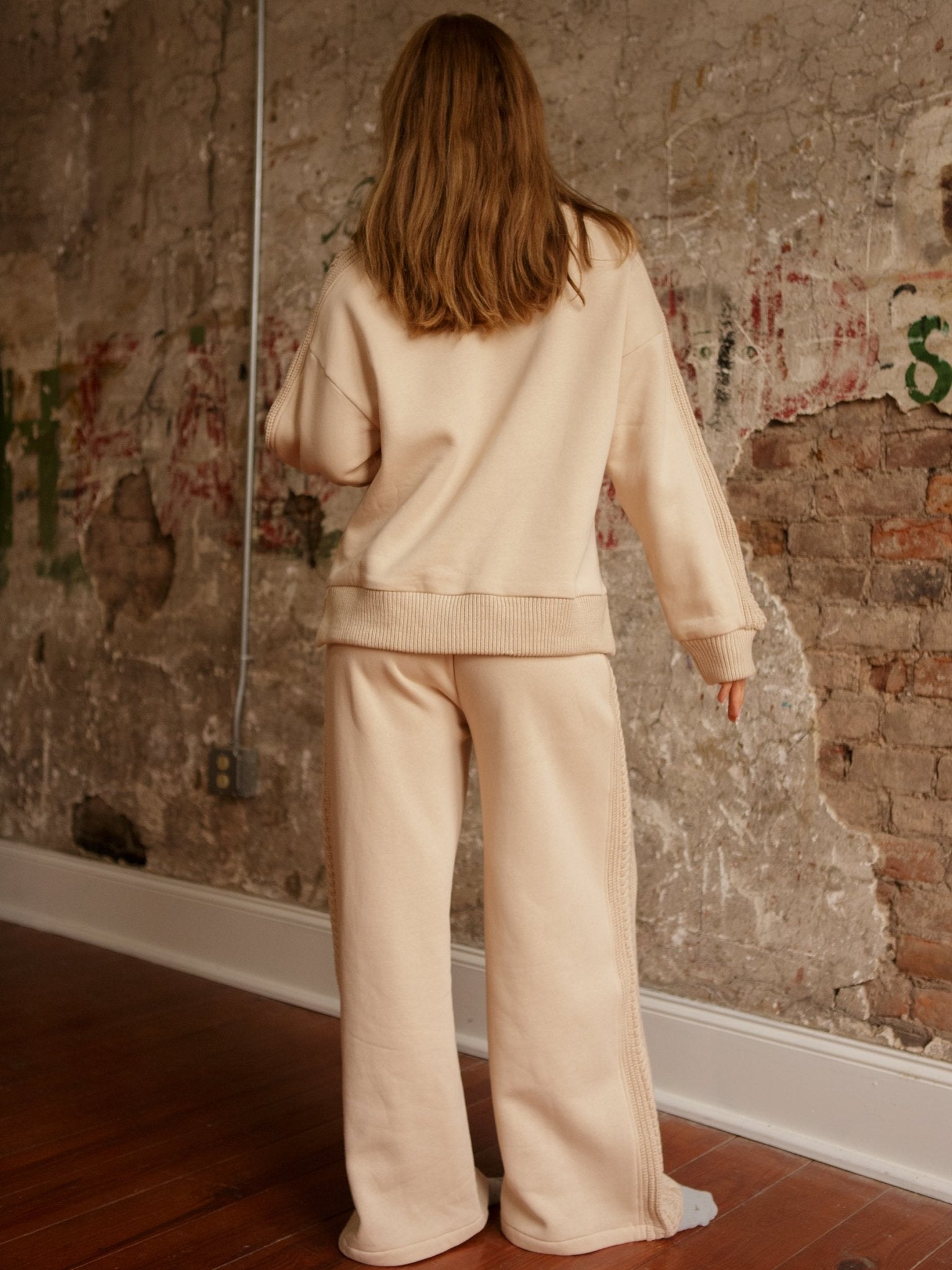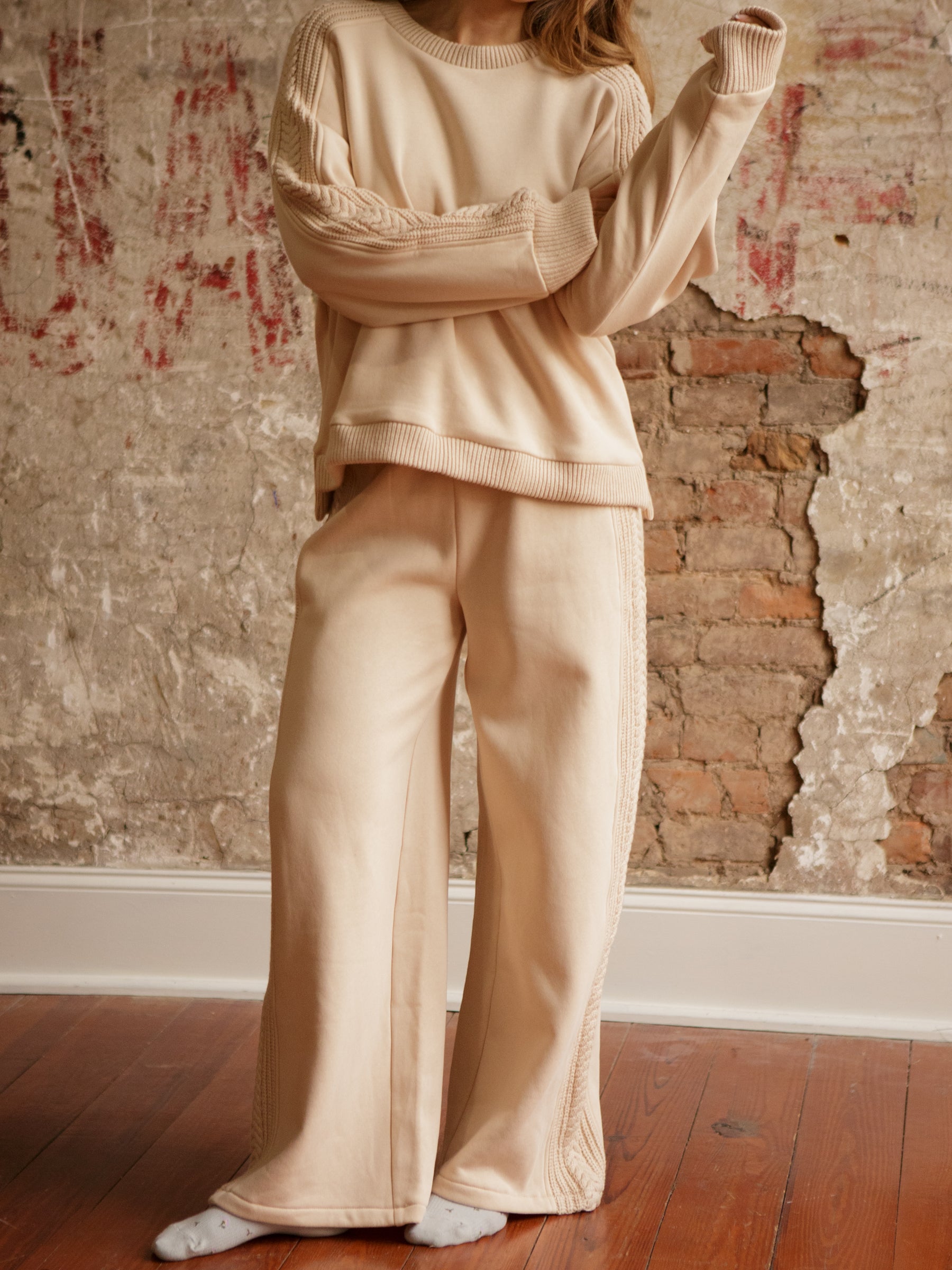 Meet the Britton Sweatpants. High-rise with a thick elastic waistband, adjustable drawstring, and wide-leg fit, they’re cozy enough for Netflix marathons but chic enough to run errands in style. Cable-knit trim adds that extra touch of detail you didn’t know you needed.