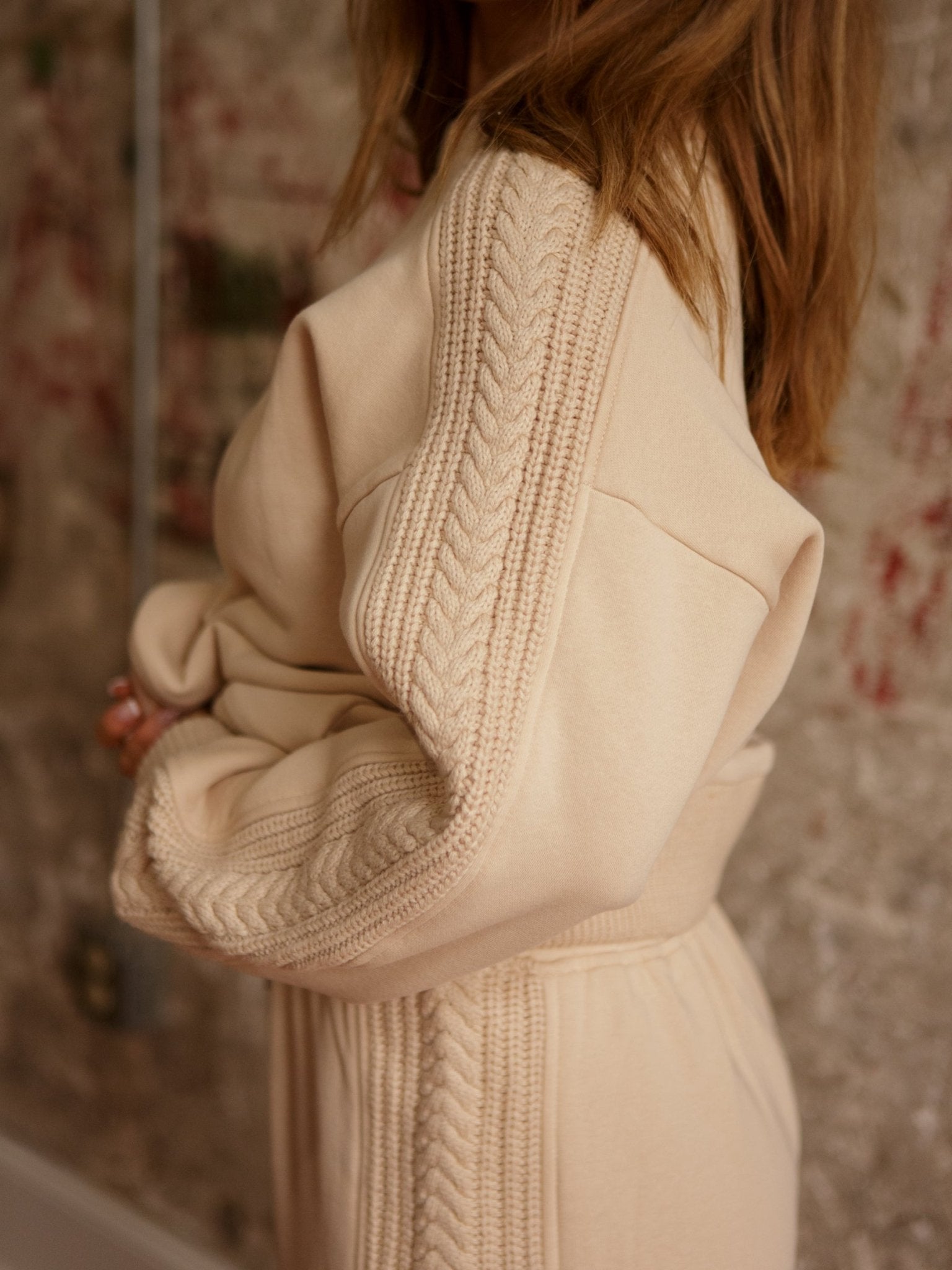 - Long Sleeves w/ Cable Knit Trim