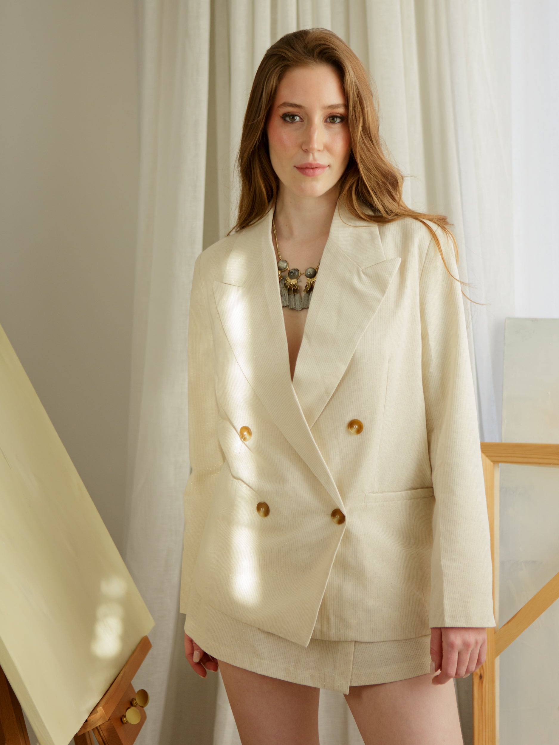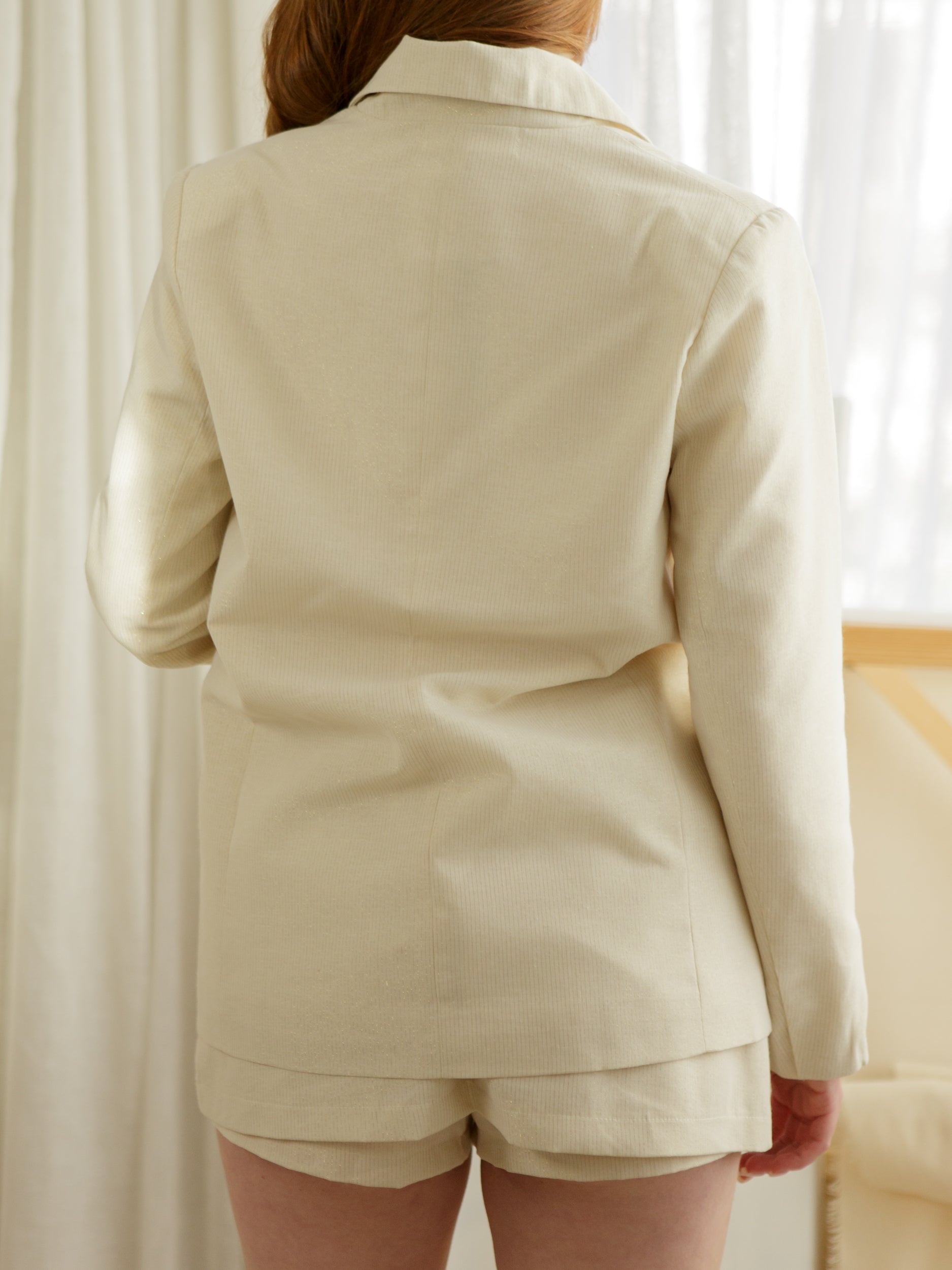 Step into the spotlight with the Hudson Sparkle Blazer. This long, relaxed-fit blazer features a V-neck, button-up front, and subtle gold shimmer stripes for a touch of glam. Perfect for layering over matching skorts, dresses, or your favorite jeans for an effortlessly chic look.