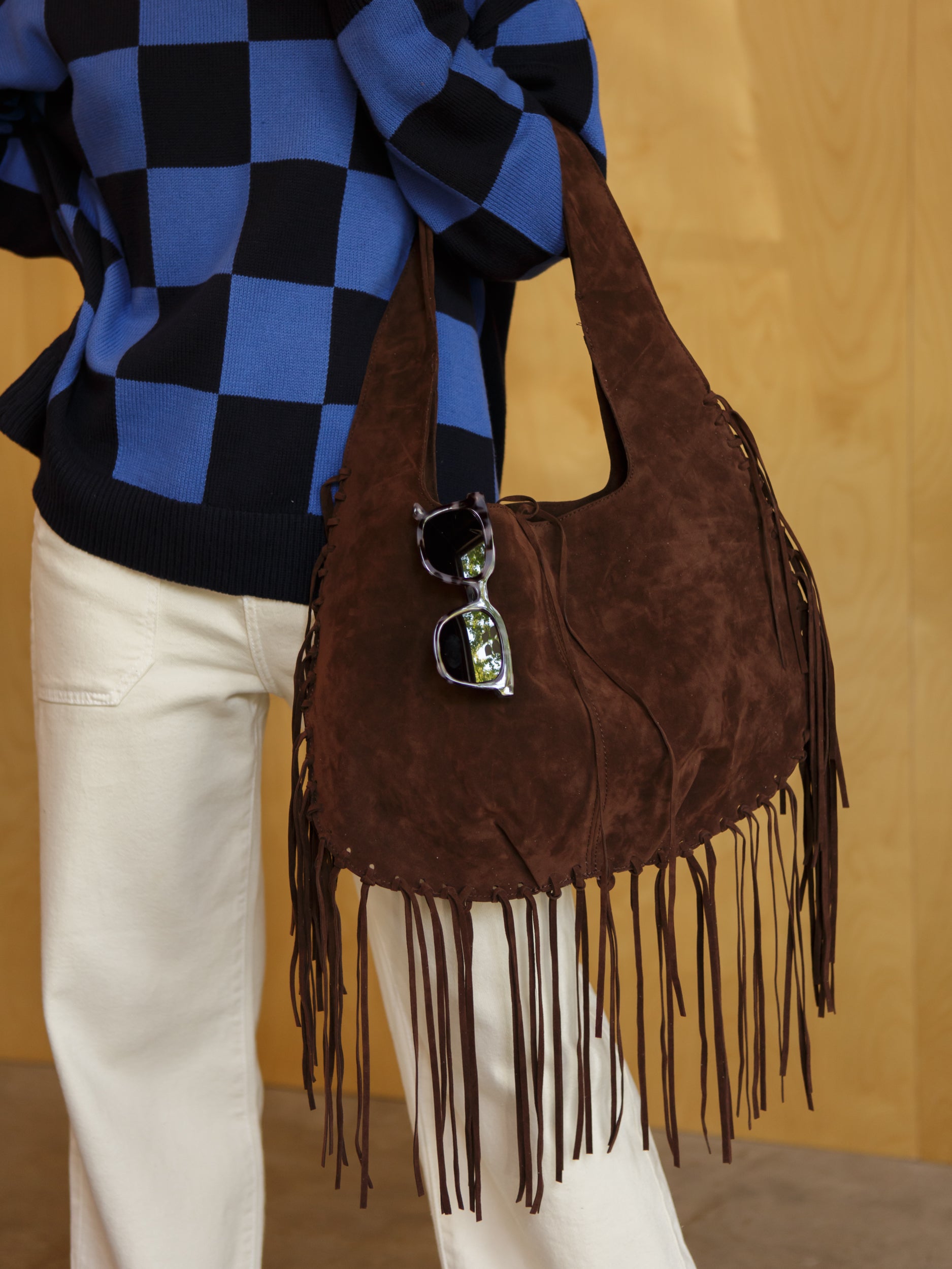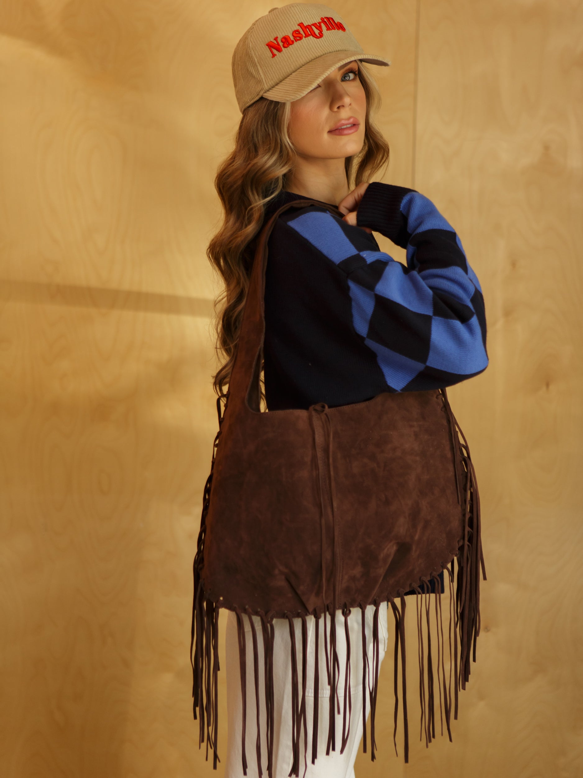 The Fab Fringe Shoulder Bag is the ultimate boho-chic accessory with soft faux suede and playful fringe detailing. Spacious and stylish, it’s perfect for carrying your essentials from day to night.