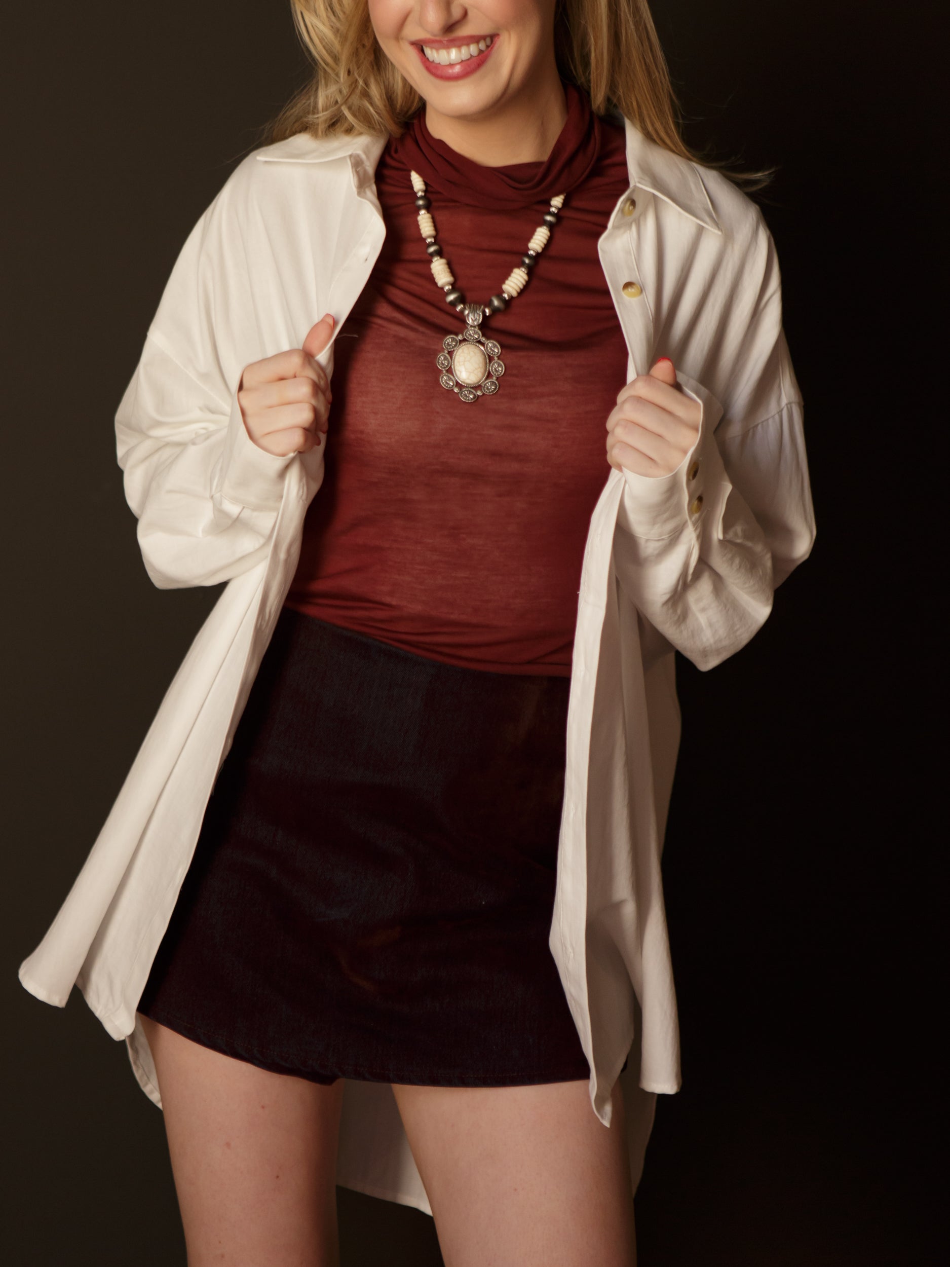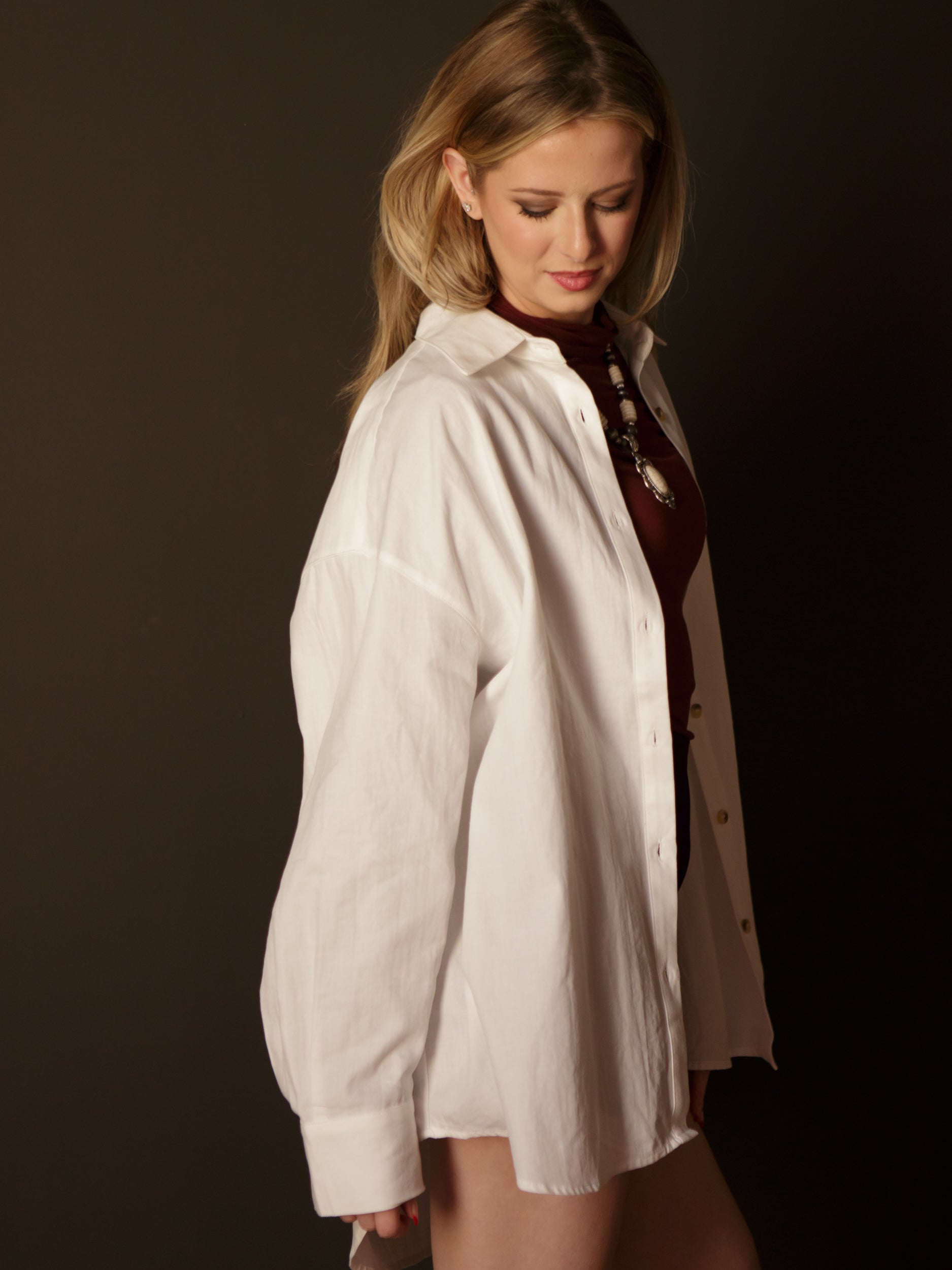 Cozy meets cool with the Dina Oversized Button Up! This long, collared shirt features button cuffs, a chest pocket, and an easy oversized fit—perfect for layering over leggings, jeans, or dresses for effortless everyday style.