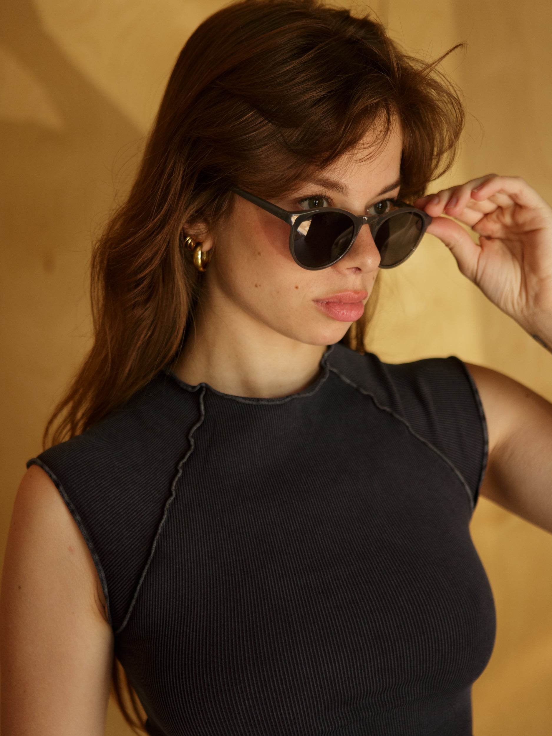 The Grad School Sunnies are that smart, effortless pair you’ll reach for on repeat. With their timeless round shape and dark lenses, they add just the right amount of structure to any look. Style them with a button-down and denim or a simple tank and bottoms for an easy, elevated vibe.