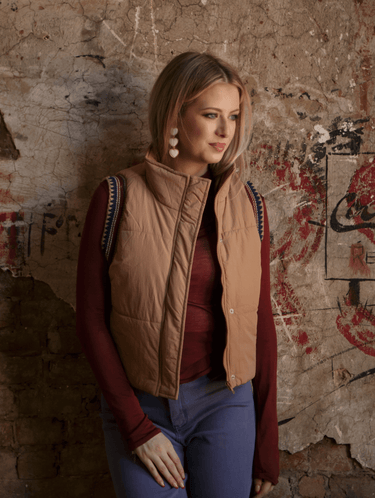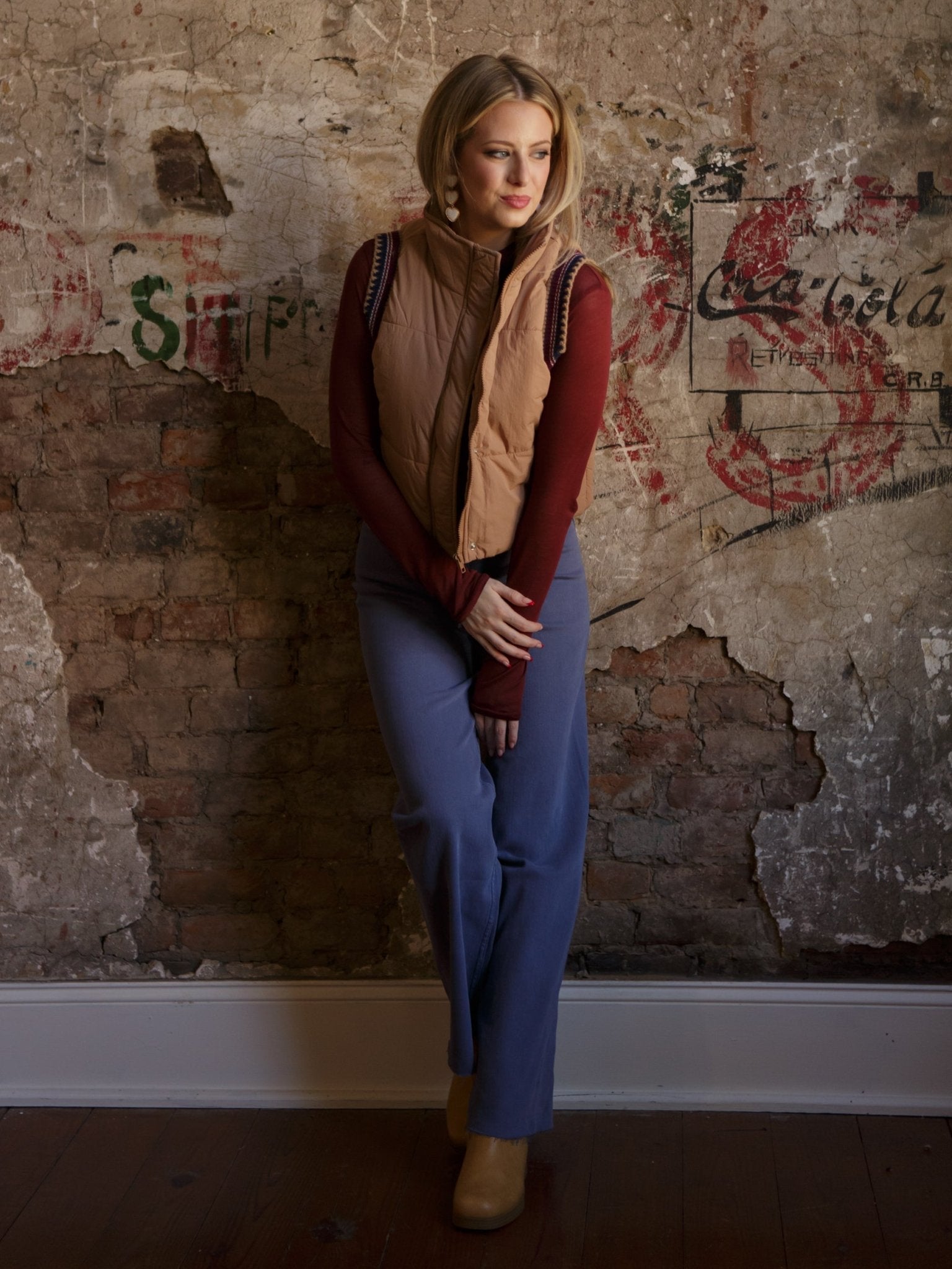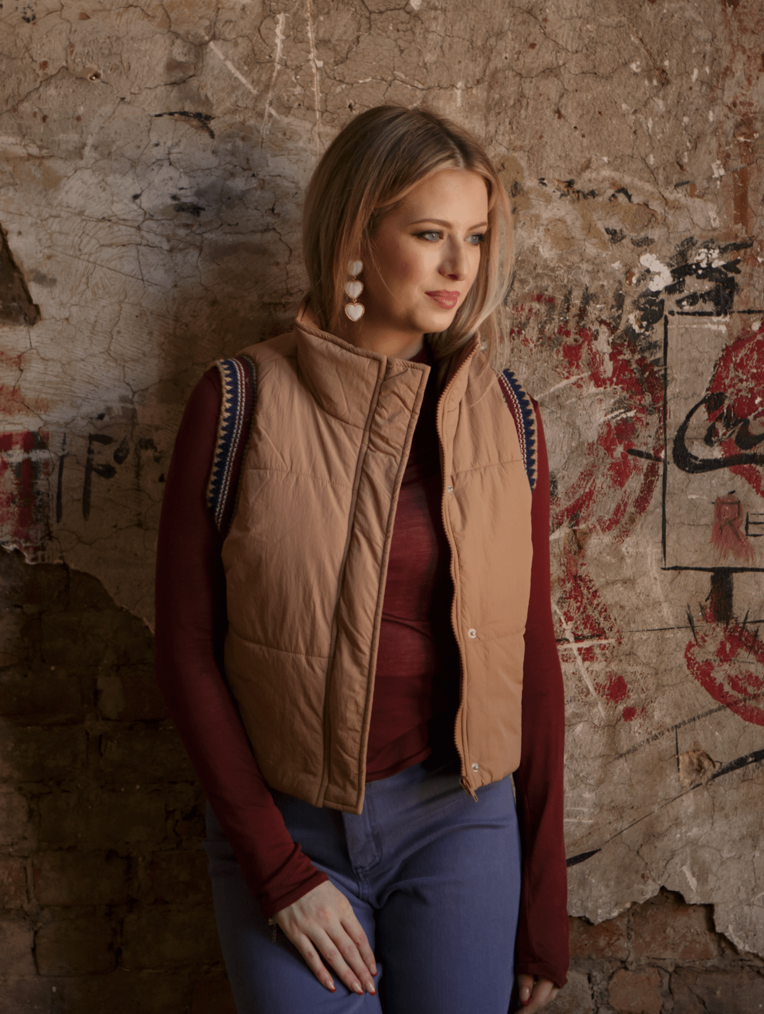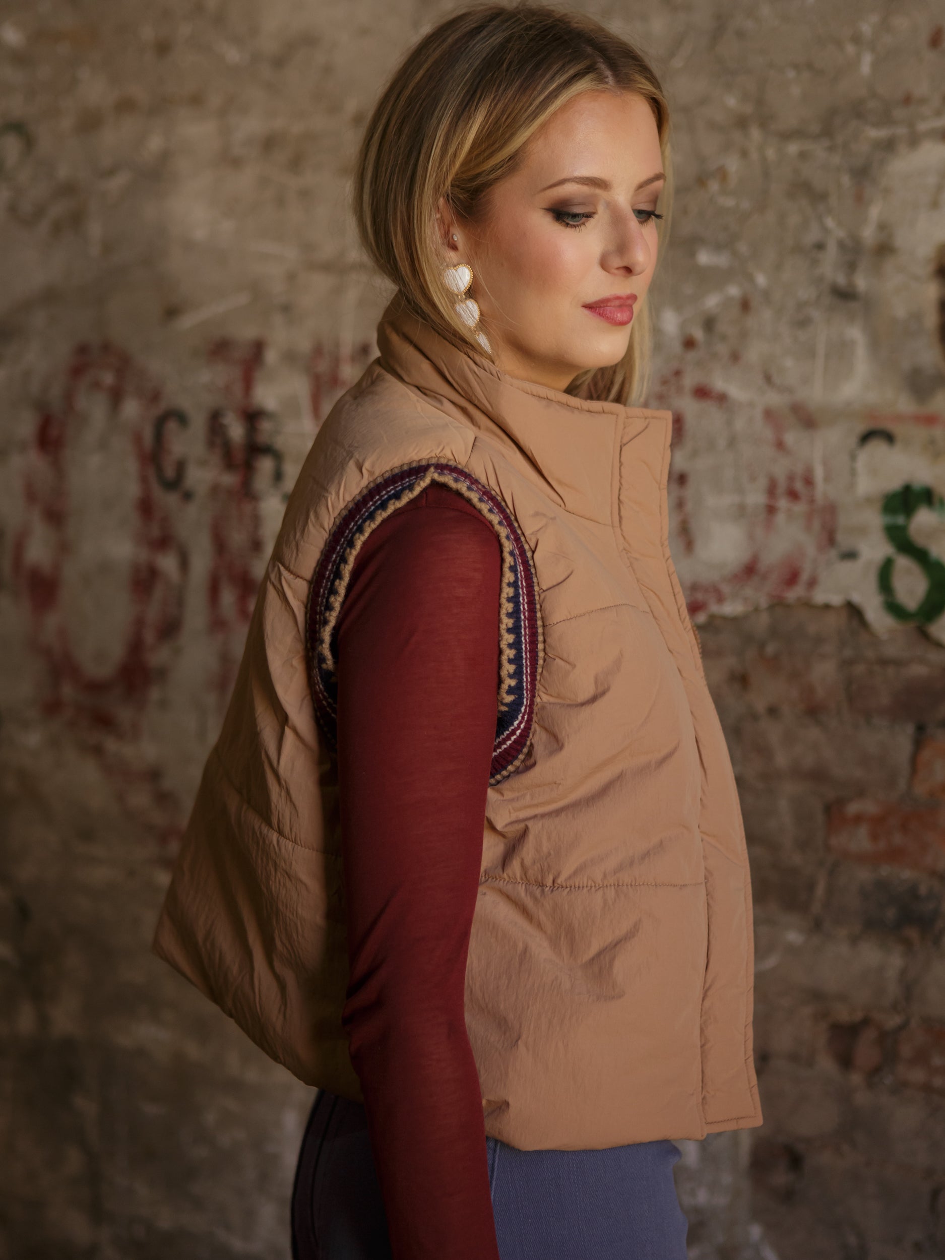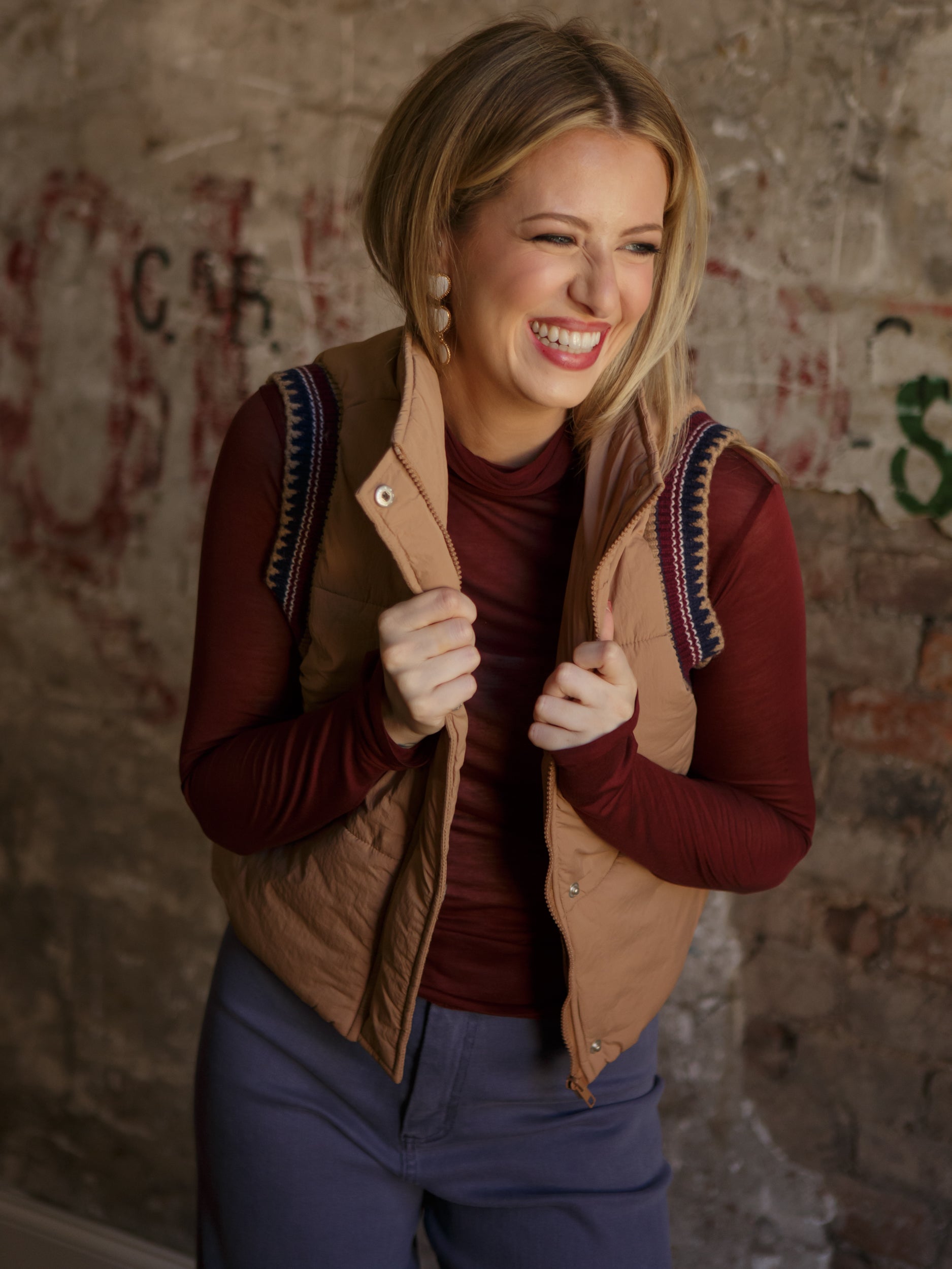 Layer up in style with the Winslow Vest! This puffy, insulated cutie features contrast trim and both button and zipper closures to keep you warm and on-trend. Perfect for tossing over a sweater or flannel for those crisp fall days.