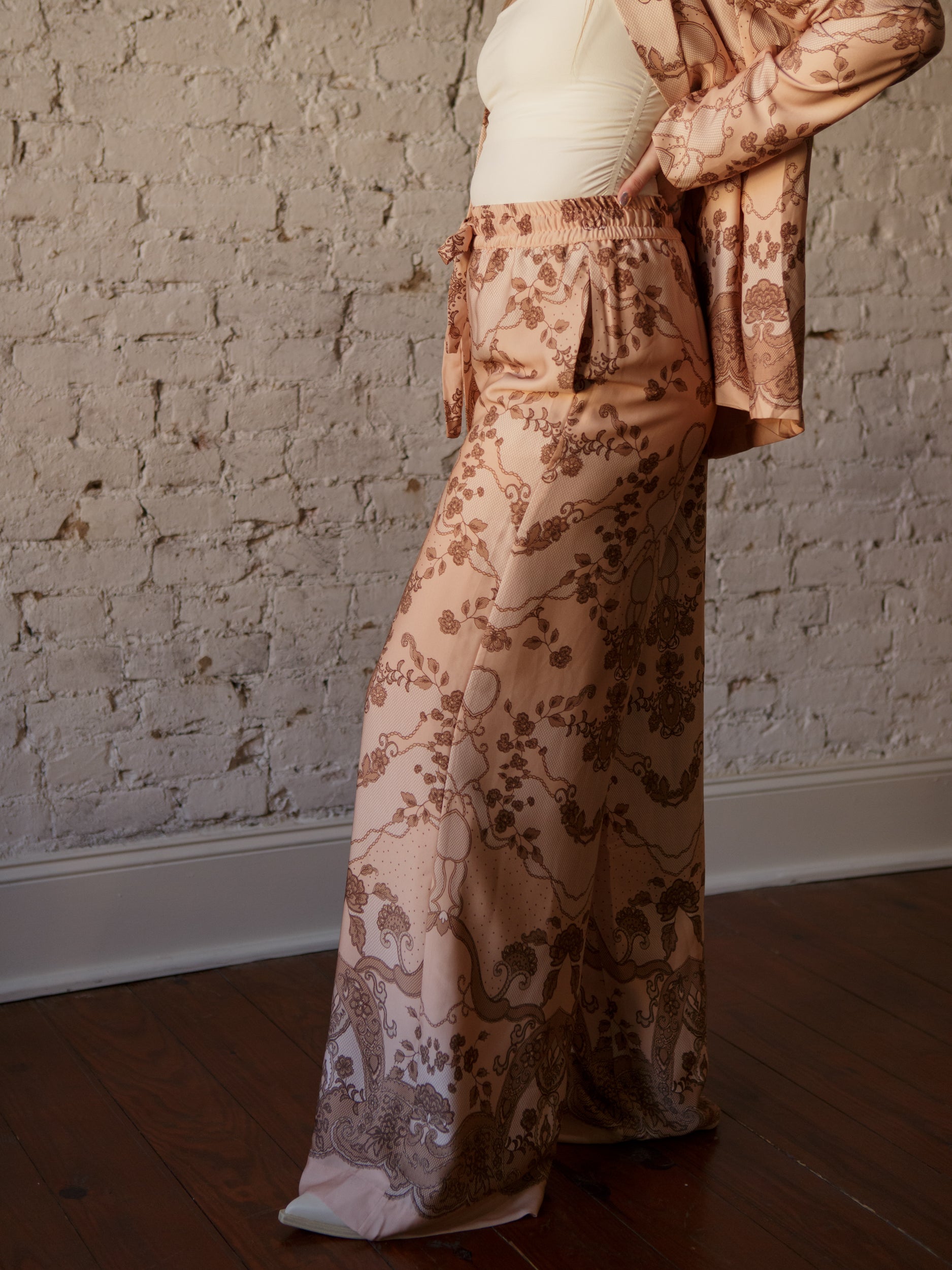 Say hello to your new statement pants—the Marilyn Filigree Pants. With a high-rise fit, breezy flowy silhouette, and dreamy filigree print, they’re equal parts comfy and chic. Perfect for pairing with a cropped tank and the matching blazer for brunch or tossing on with a slouchy sweater for cozy class-to-coffee vibes.