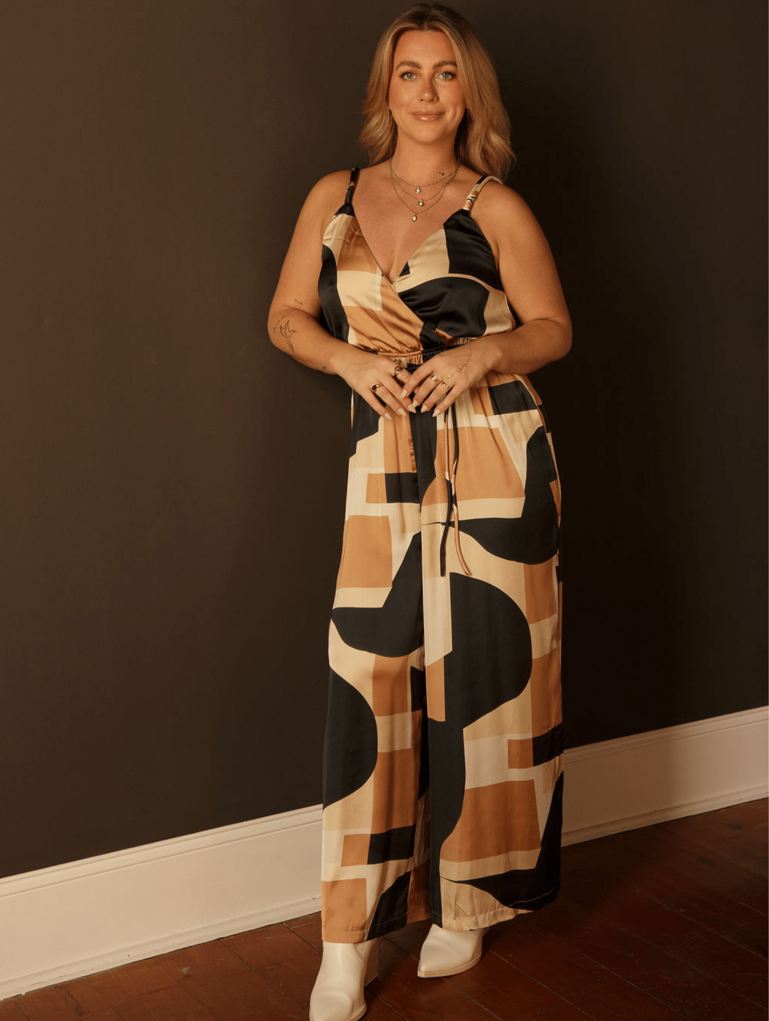 Bold print, easy fit, and major cool-girl points. The Frida Pattern Jumpsuit has a flattering V-neckline, wide legs, and a waist belt that pulls it all together. With fixed straps and a geometric print that pops, this one’s ready for rooftop dinners or weekend gallery hopping.