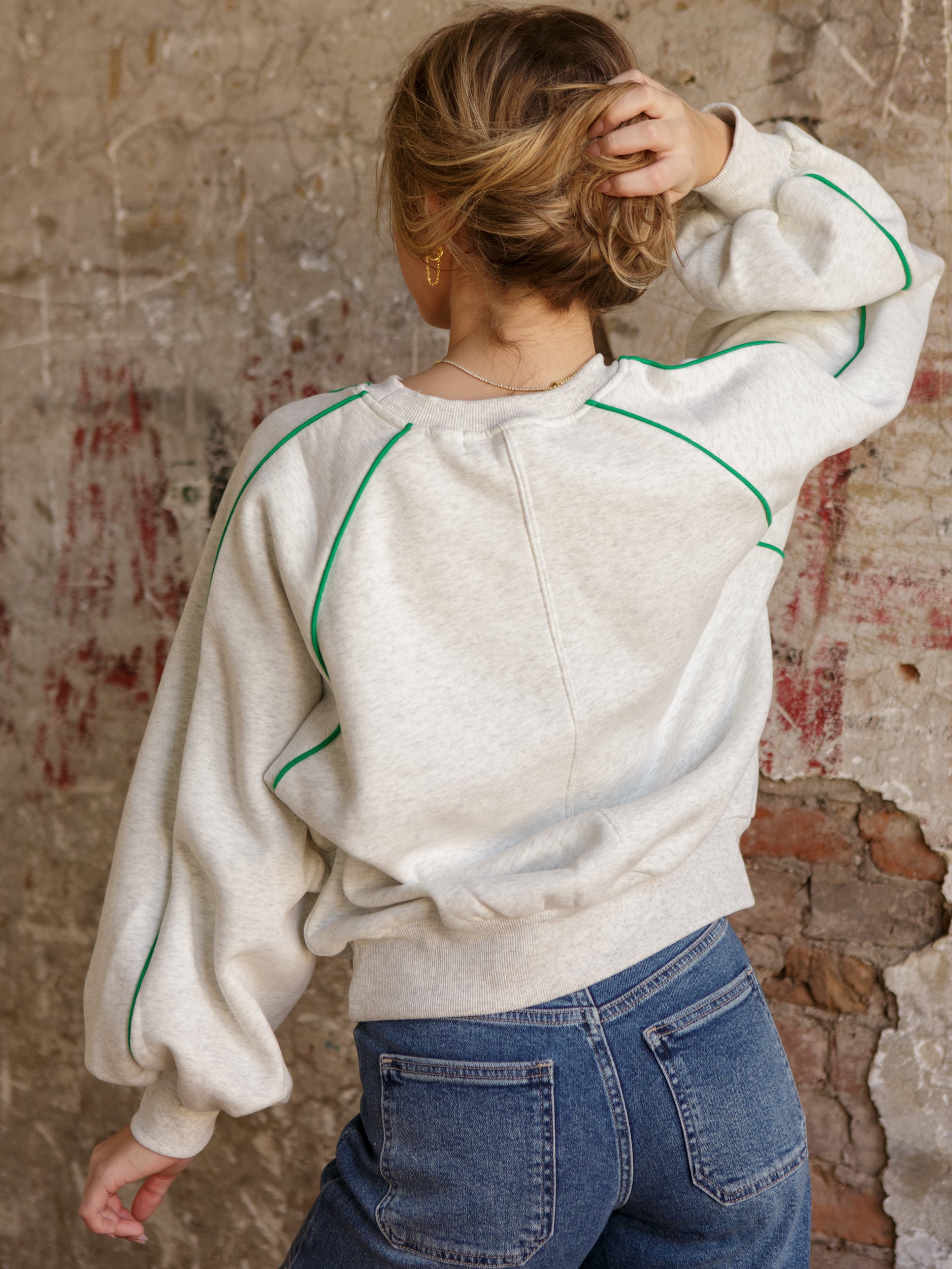 The Jessica Pullover is fleece-lined for max comfort and finished with blue piping that adds a fun, sporty edge. With its oversized fit and ribbed trim, it’s an easy grab for laid-back days, errands, or couch time that turns into coffee time.