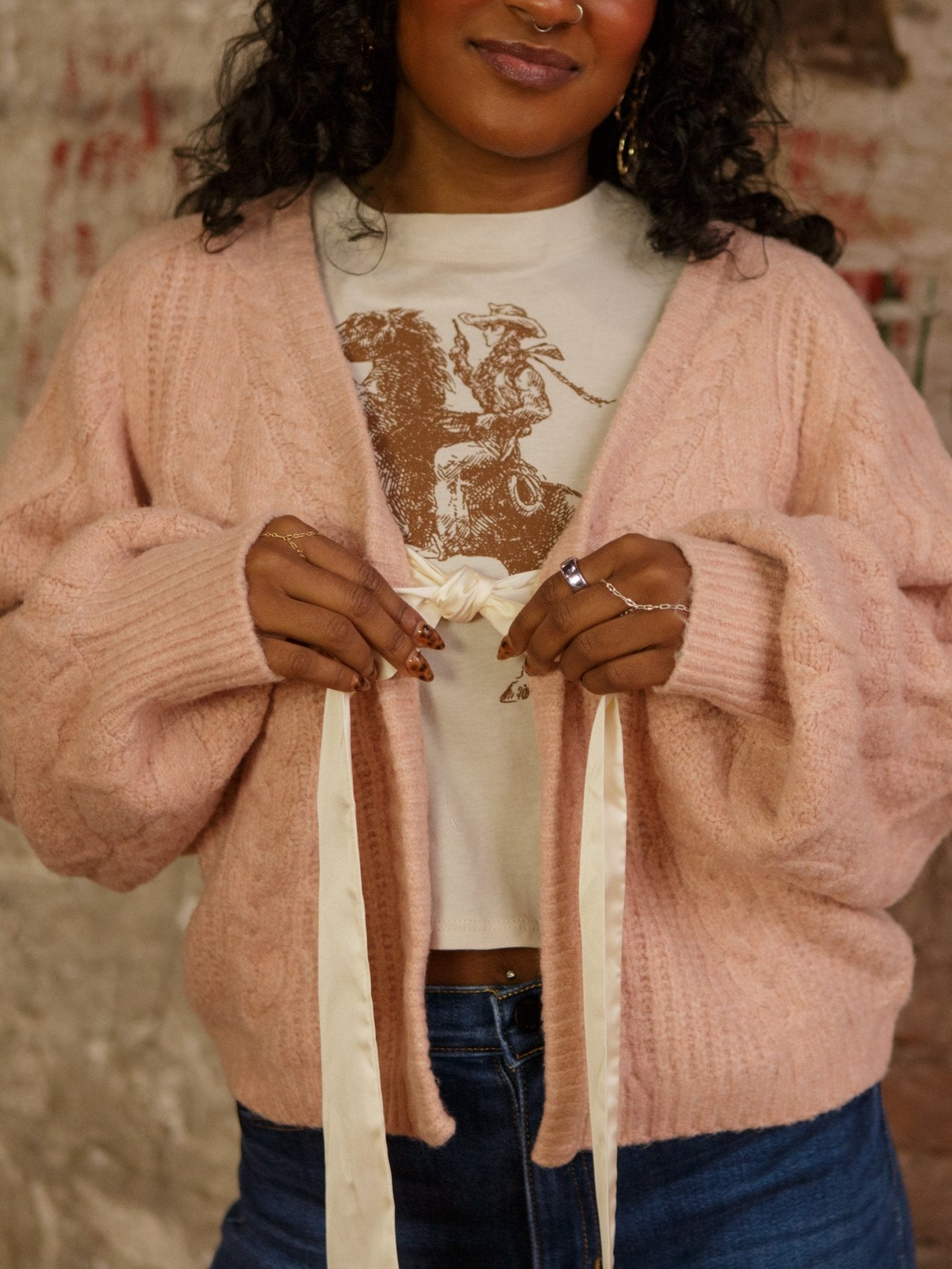 The Hollis Tie Front Sweater is the perfect mix of comfy and chic. With a V-neck, long sleeves, and a ribbon tie closure, it’s an easy way to look cute while staying comfy.