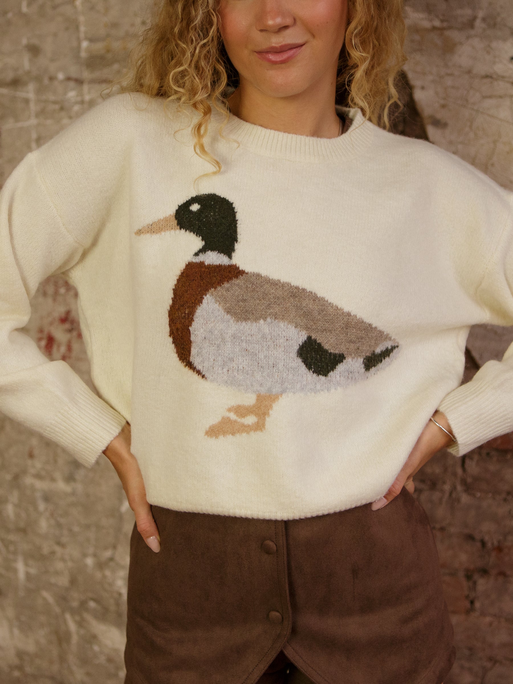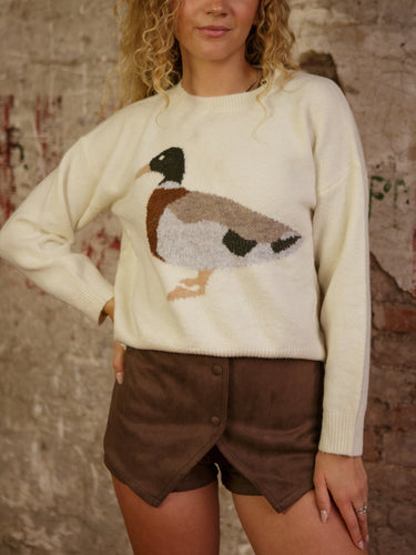 The Kofi Duck Sweater is here to make chilly days way more fun. This ultra-cozy knit features the sweetest duck graphic ever, plus ribbed trim and a relaxed, stretchy fit that feels like weekend comfort in sweater form.