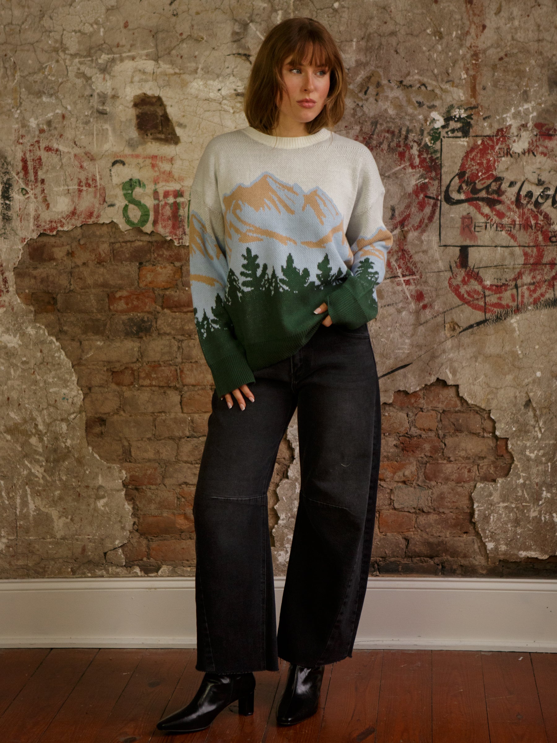 The Lolla Mountain Sweater is basically a wearable cabin getaway. Cozy knit, relaxed fit, and an adorable mountain-and-evergreen print make it perfect for coffee runs, fall walks, or any day you want to feel like you’re vibing with the outdoors—even if you’re just binge-watching at home.