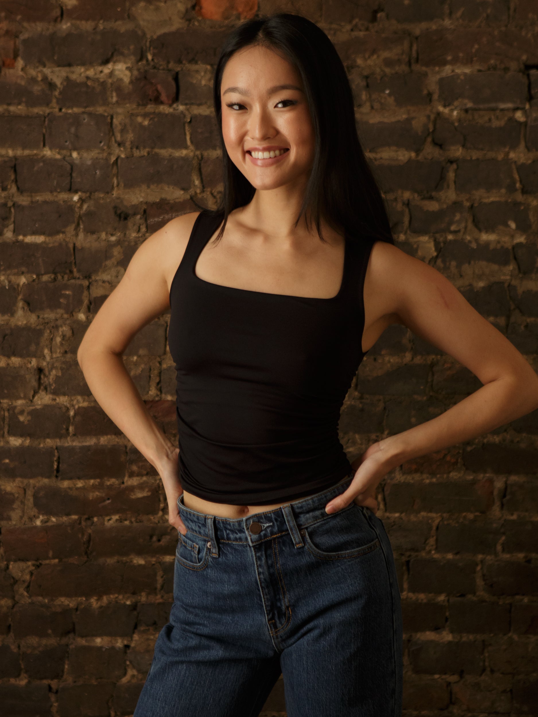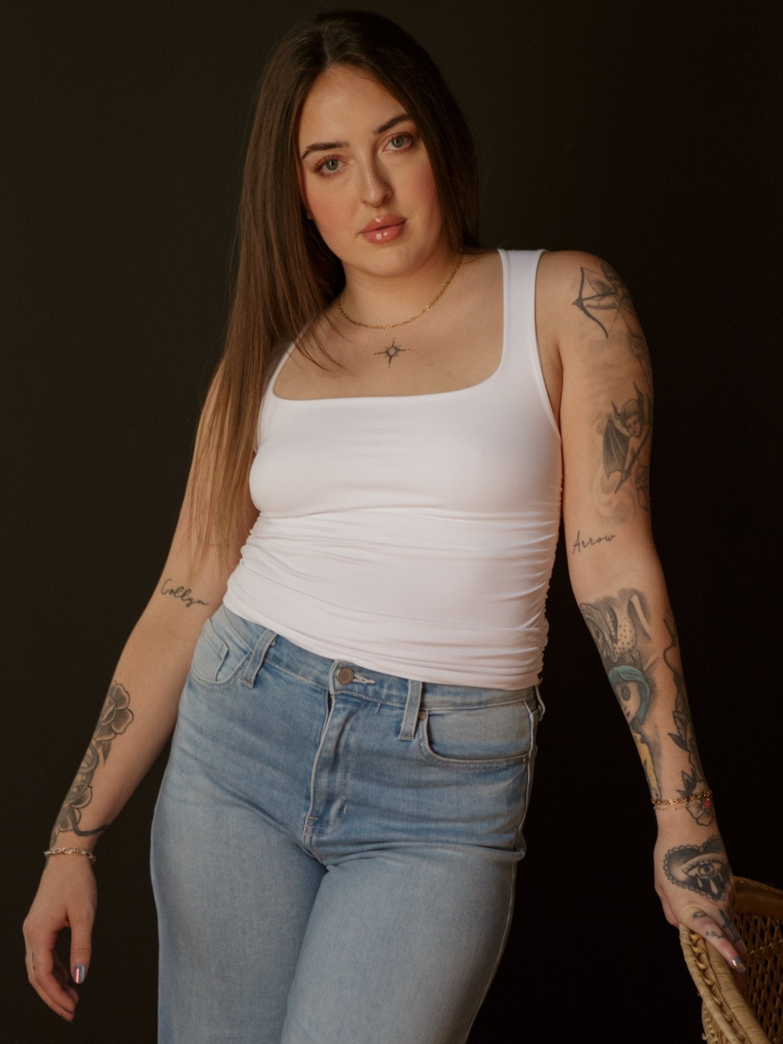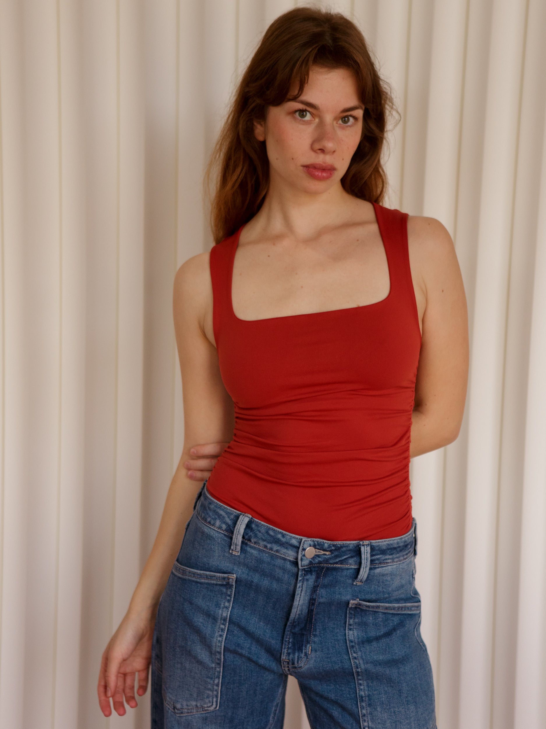 Your everyday super soft, stretchy and perfect basic is here! This fitted top features a flattering ruched side, square neckline, and wide straps for a seamless design.