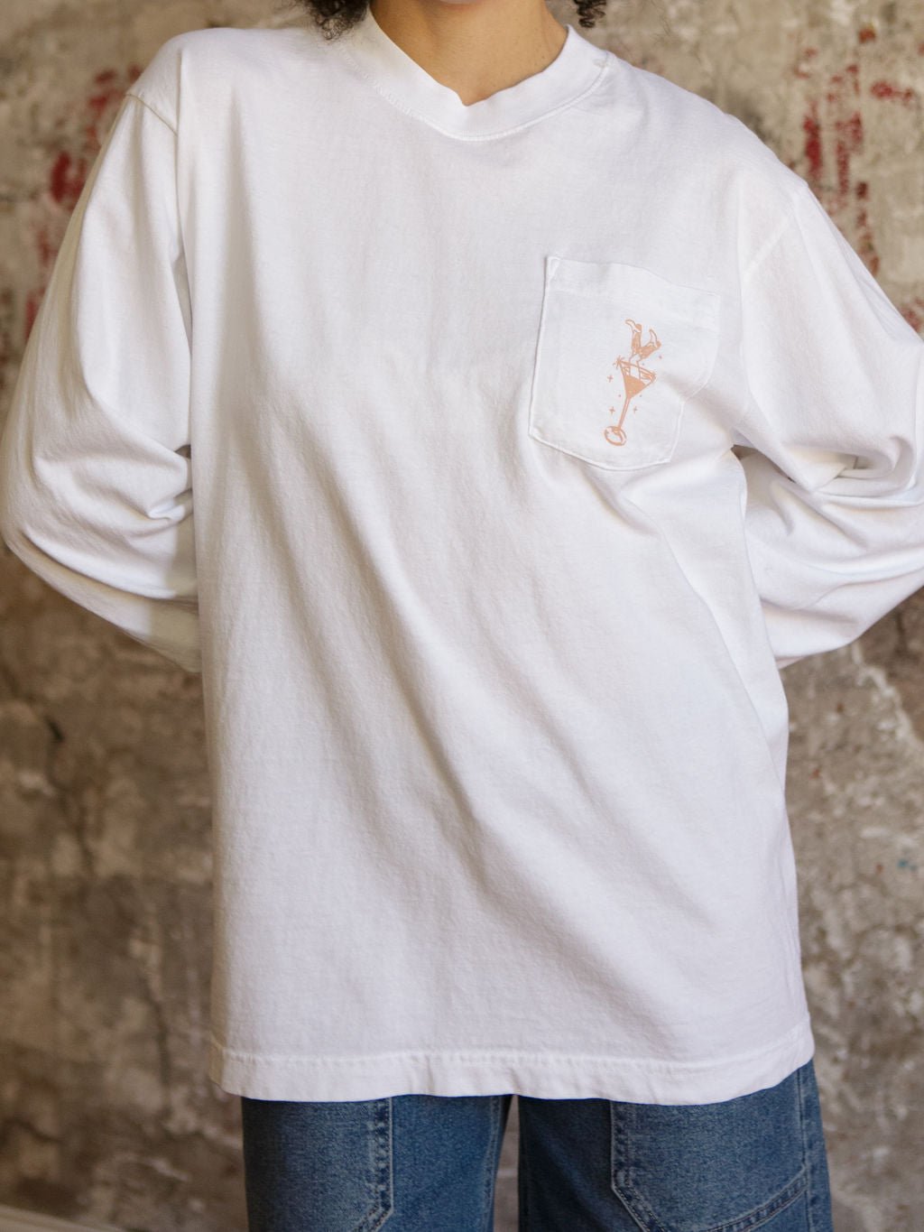 The Y’all Come Back Martini Long Sleeve is a total weekend vibe in a tee. Featuring a playful martini cowgirl print, relaxed fit, and front chest pocket, this lightweight cotton top keeps things comfy while adding a little personality. Perfect with jeans, skirts, or layered under your favorite jacket.