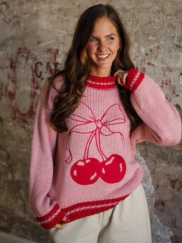 Sweet meets cozy in the Helena Cherry Sweater! This chunky knit cutie features embroidered cherry details, contrast trim, and a relaxed fit that’s perfect for playful fall days. Just add jeans and sneakers for an effortlessly fun look.