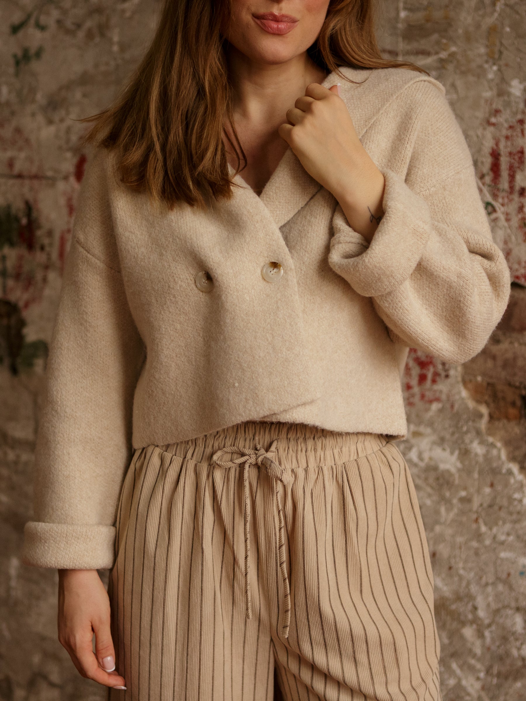 The Chloe Hooded Cardigan is basically your new cuddle buddy. This chunky knit cutie comes with a hood, long sleeves, and a double-button closure, all in a cropped length that pairs perfectly with high-rise anything. Soft, stretchy, and ready for every lazy-girl-chic outfit.