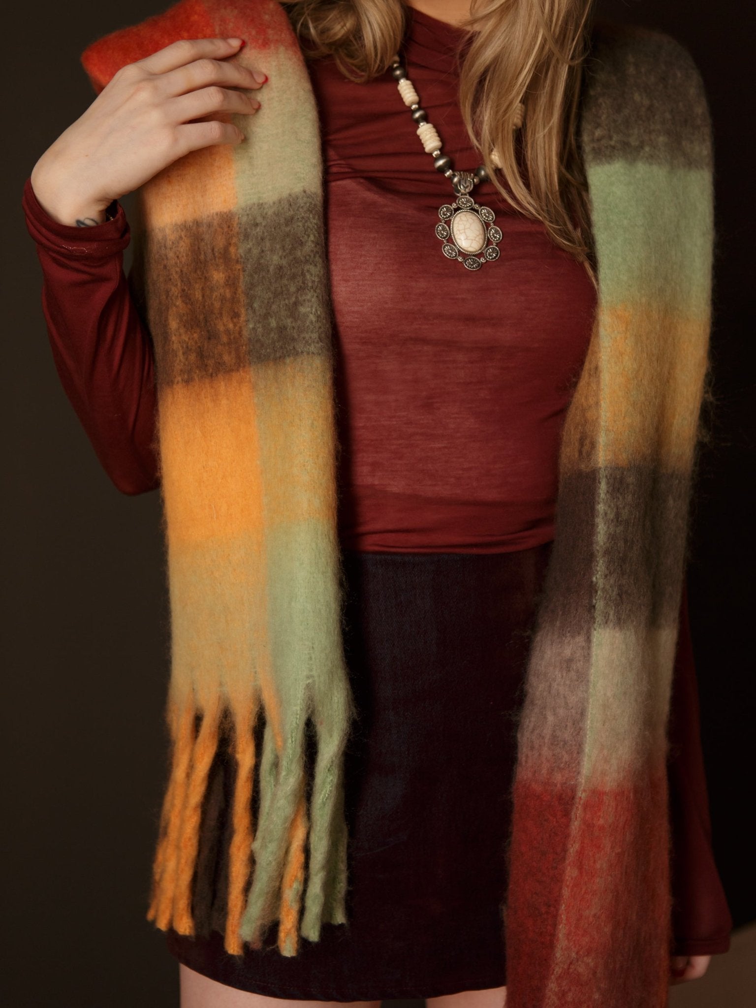 Bundle up in the Cozy Winter Scarf—your new cold-weather BFF! This oversized blanket scarf features a classic plaid print, soft tassels, and the coziest, ultra-soft feel. Perfect for layering over your fave coat or wrapping up on chilly coffee runs.