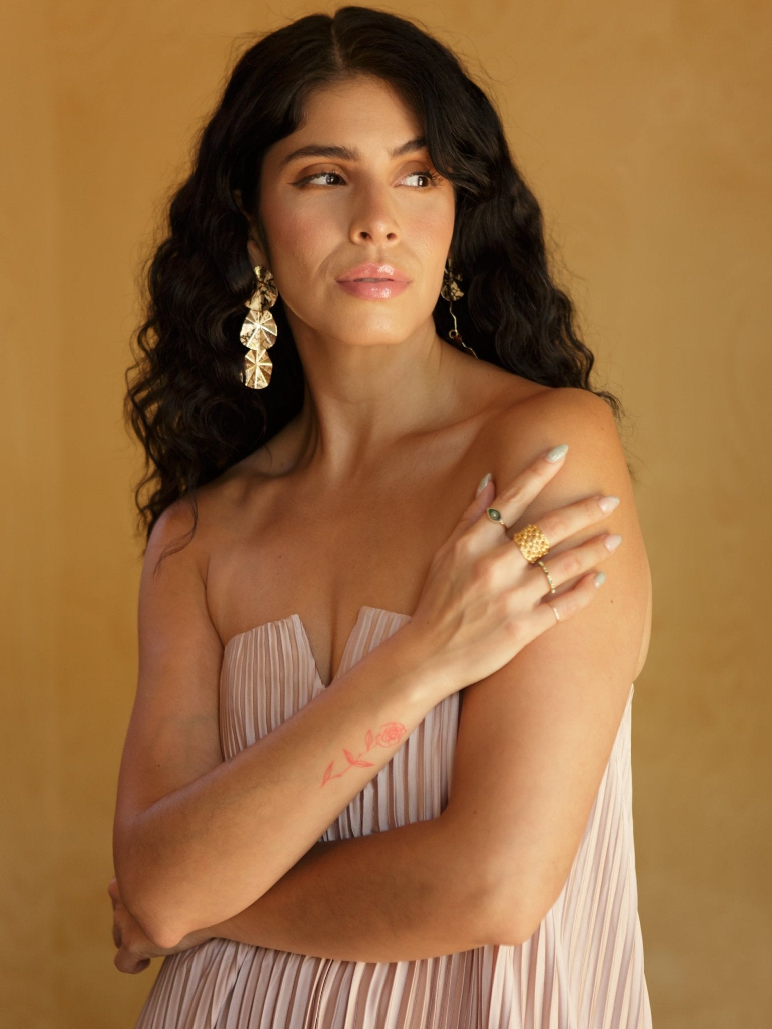 The Fold Over Earrings are a chic, everyday accessory with a sleek gold finish. Lightweight and dangle-style, they’re perfect for adding a subtle touch of glam to any outfit.