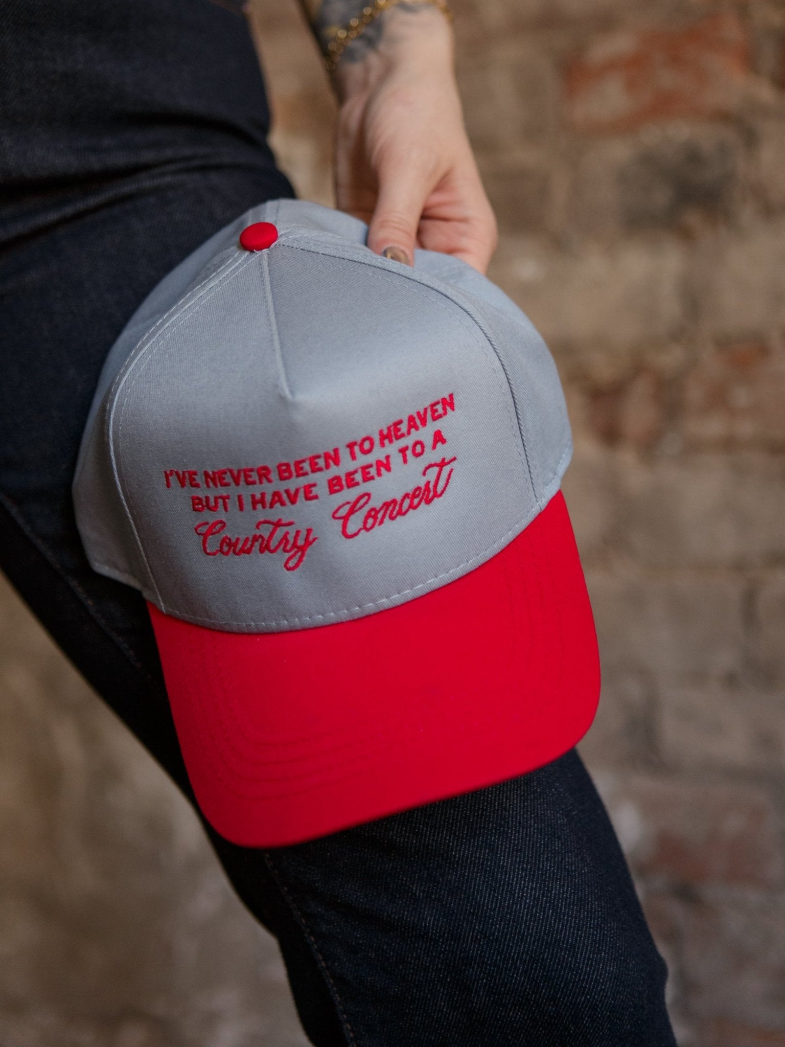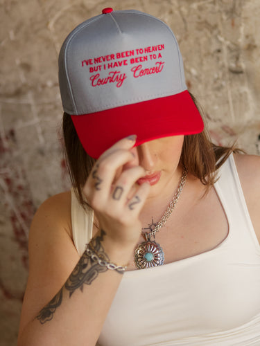 Top off your look with the Never Been to Heaven Hat. This trucker-style cap features a bold red brim, embroidered detail, and adjustable snap back for a perfect fit—effortlessly cool and casual.