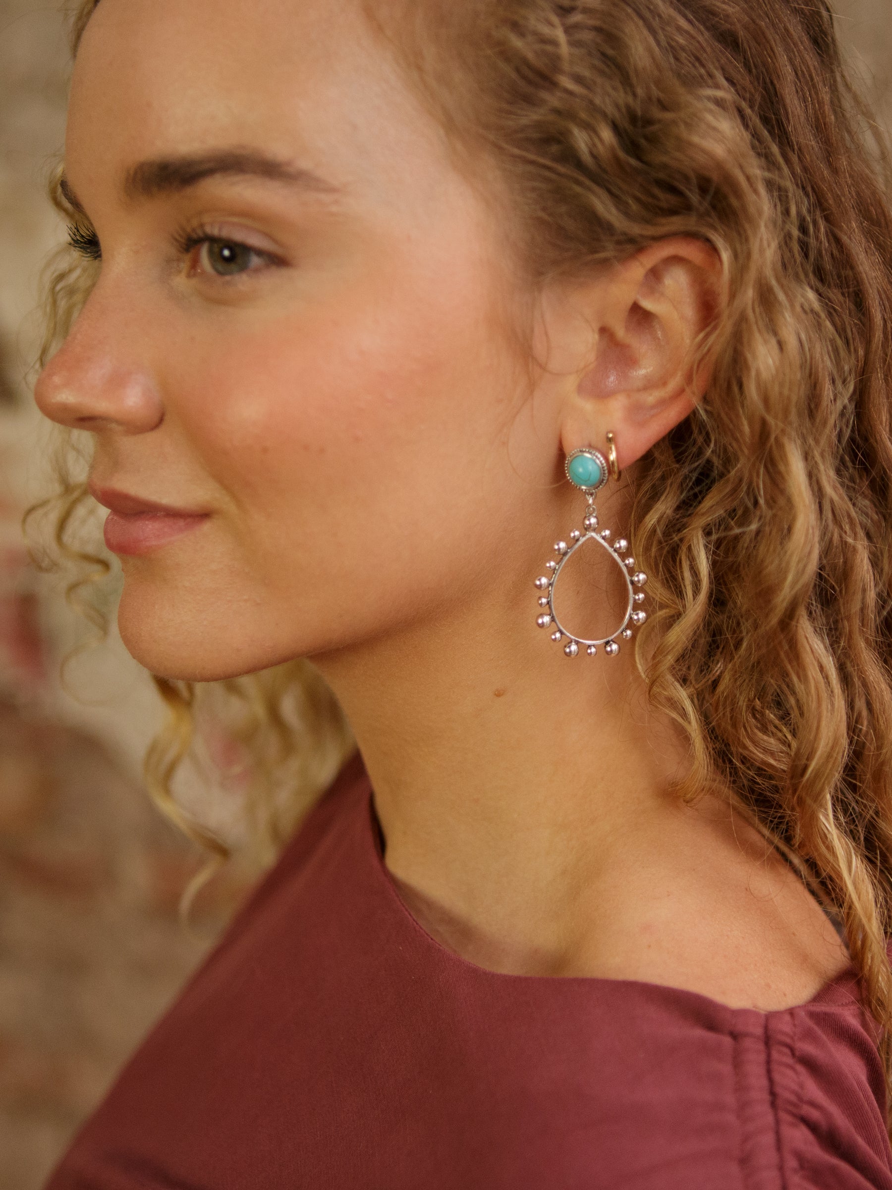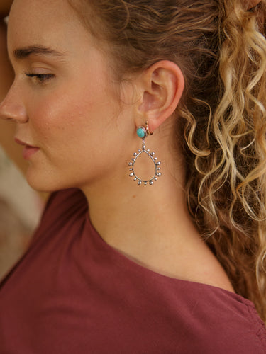 The Tusayon Turquoise Earrings are the perfect pop of color for any outfit. Silver post-back dangles feature vibrant turquoise, adding a subtle southwestern-inspired touch.